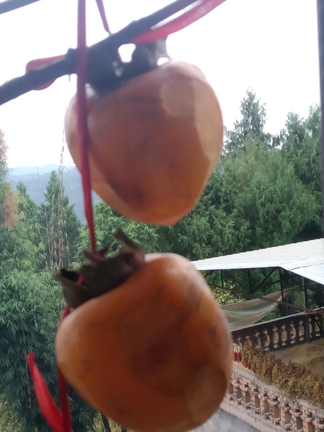 刚开始时表皮还是金色略带绿色的,这时的石子还是硬硬的还不可以吃,因为它还是酸涩的,农民伯伯将柿子收回家,把皮给削掉,然后把两个柿子用一根铁丝栽在竹竿上,直到那柿子晒干为止就可以吃了,把它呈现在眼前,是橙黄的肉干,把它与肉炒在一起,那肉都会变得很香甜,那里面的汁水也会香气扑鼻。