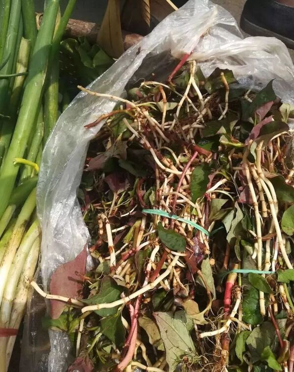 找到折耳根后,我用锄头刨开了旁边的泥土,再小心翼翼地把它拔出来,一股淡淡的清香便散发了出来,不一会儿,我们就弄好了一大袋,心满意足地回家了。