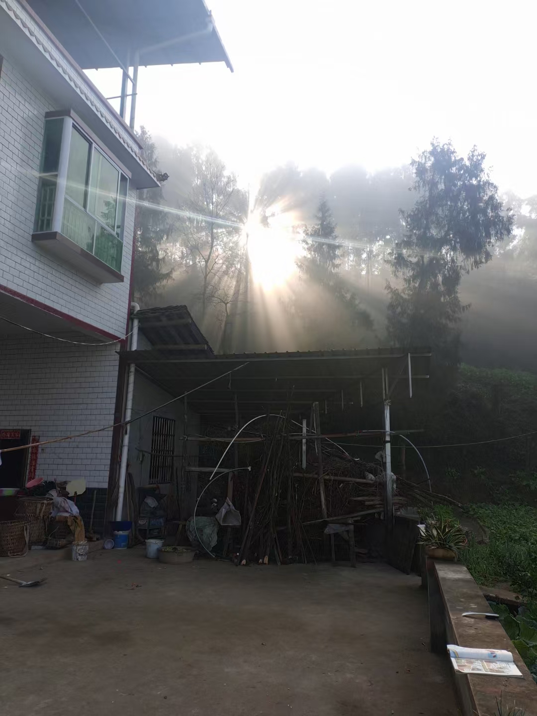 清晨,推开窗户,“哇塞”,云雾缭绕,一眼望不到边,如同仙境一般,寒气立即迎面而来。而那颗璀璨的东方明珠在鸡鸣的催促下悄然升起,天空露出了鱼肚白。