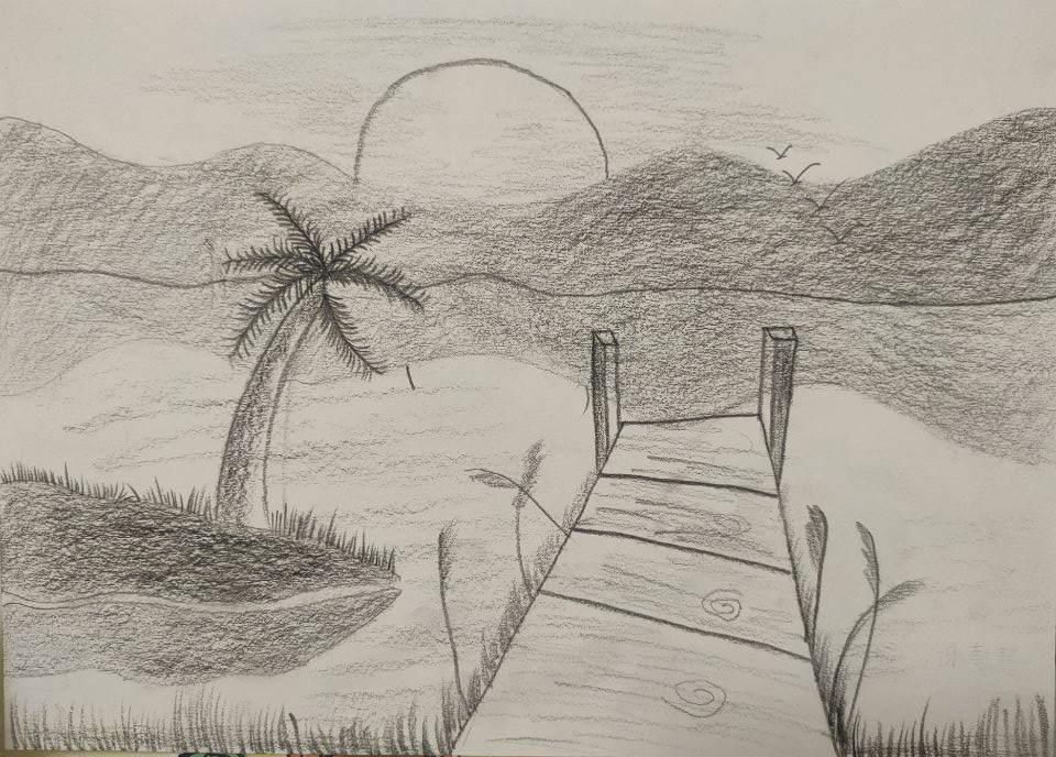 小桥流水、山峦叠嶂、夕阳西下、雀鸟晚归,一切都是那么美丽,和谐,作品描绘了乡村特有的美景。