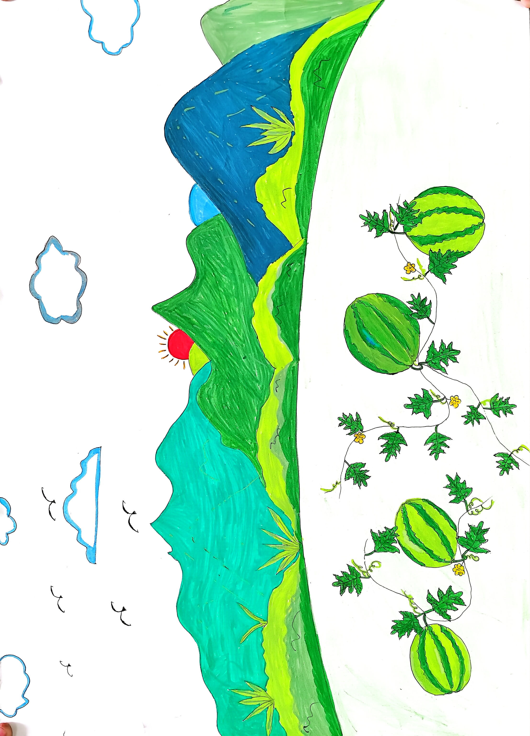 猫山西瓜生长于江津南部山区猫山上,海拔约500米。山上土质富含硒和锌,水源充足且温差大,长出来了西瓜糖分高,个头大,瓜瓢脆。又大圆的西瓜像一个大大的皮球,西瓜皮青青的,有着一条条弯弯曲曲的条纹。种西瓜的人告诉我说:"用手指轻轻的敲几下,"有"咚咚咚"的清脆响声,那说明这个西瓜一定是个好瓜,保准又脆又甜。摘下一个西瓜,拿刀切开,西瓜汁直流,西瓜瓤红红的,上面还有一颗颗黑黑的西瓜籽,切一块,咬一口,汁水流下来非常好吃,很甜很甜,可以榨成西瓜汁,还是一杯很解渴的饮料呢。西瓜皮可以美容,还可以用来炒菜,这西瓜可全身都是宝啊! 爱我的家乡,更爱家乡的西瓜,欢迎你也来品尝我家乡的西瓜。