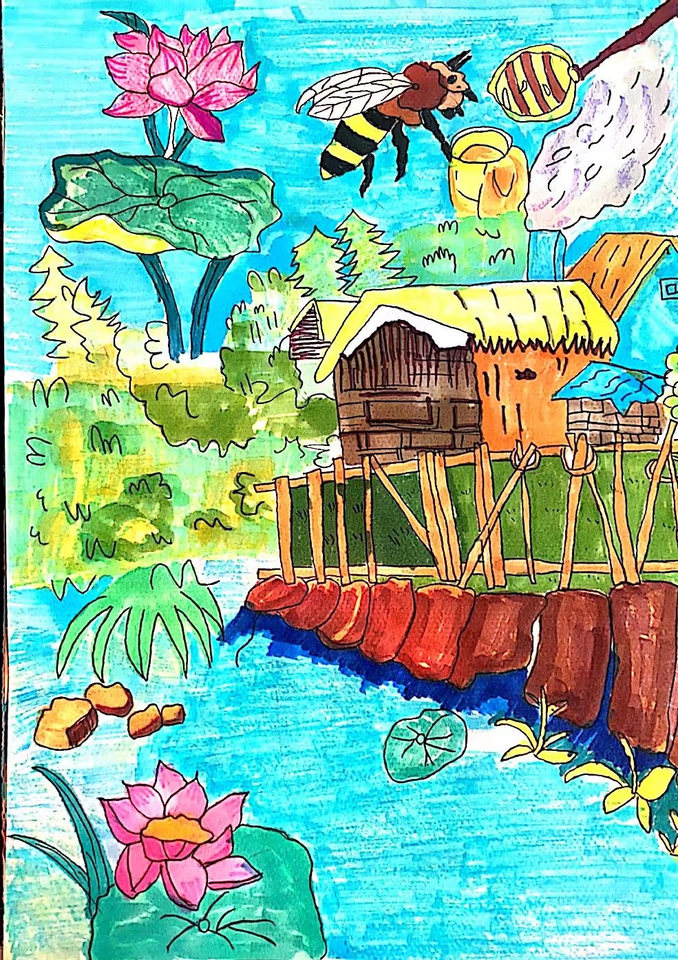 我的家乡位于陕西省汉中市略阳县仙台坝镇,身处大山深处,得益于国家乡村振兴政策,让我的家乡逐渐发展起来,池塘的荷花、蜜蜂峡谷的蜜蜂、充满乡村气息的农家乐,是娱乐休闲的好去处。这里远离城市的喧嚣,在静谧的的生活下人们享受着这份美好,希望通过自己的画笔记录下家乡的发展,也向大家展示我美丽的家乡。