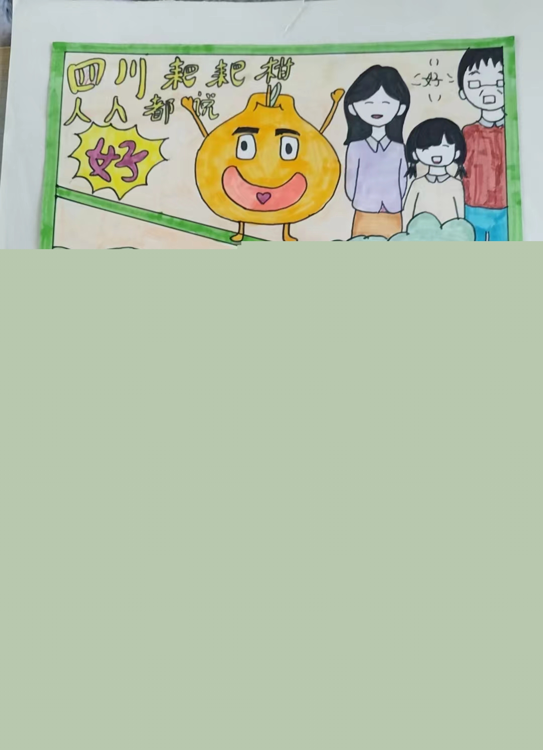 我来自蒲江,耙耙柑是我们这个地方的特产,很多人都很喜欢我画的耙耙柑,画中有一位农民伯伯,还有一个家庭在拿着啪啪干,他们都说啪啪干好,胯下还有一张啪啪干,正在欢乐的玩耍,还有一筐啪啪干,一个个都很甜,大家都说好