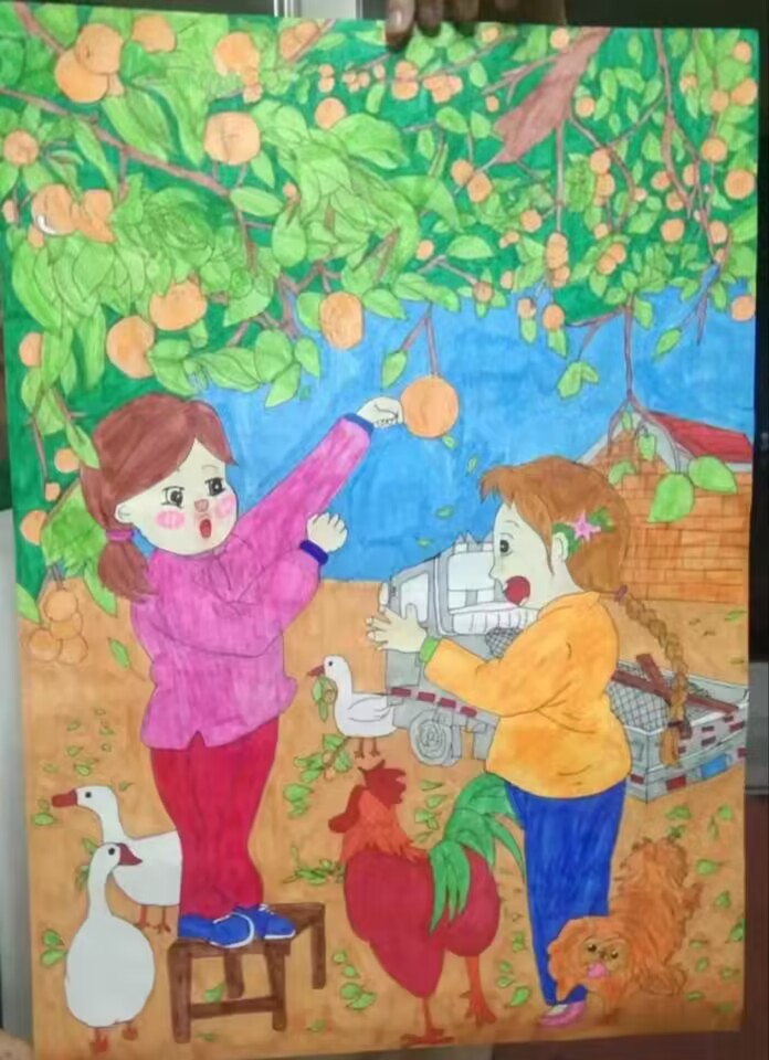 我生活在乡村,这里空汽清新,风景美丽。金秋时节,家乡处处洋溢着丰收的喜悦。大人、小孩都忙碌在田间地头。你瞧,果园里,果满树梢,乡村的孩子们亲手采摘着沉甸甸的果实,不仅感受到劳动带来的快乐,更多的是用心灵感受成长与收获!