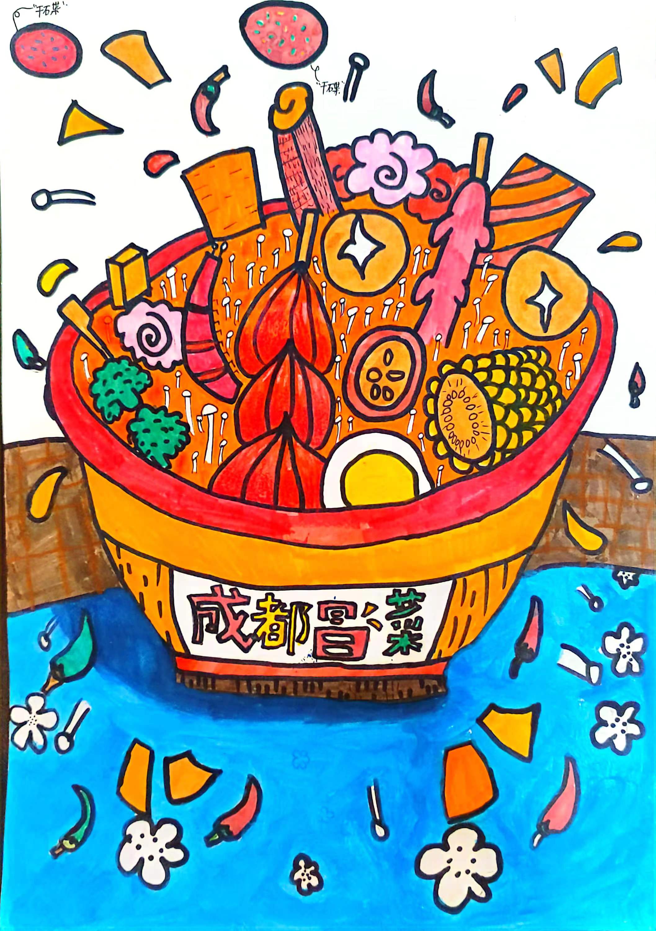 冒菜是一道一肉类、豆制品、青菜、海鲜、菌菇等为主要食材制作的菜品,起源于成都,具有四川特色的传统小吃。冒菜最为讲究的吃为“干碟”,即在小碟中放置干的辣椒粉,加上盐,味精等的调料,将锅里烫好的菜在干碟里轻轻地一蘸,然后就可以送进嘴里,味道又香又辣,甚为可口。