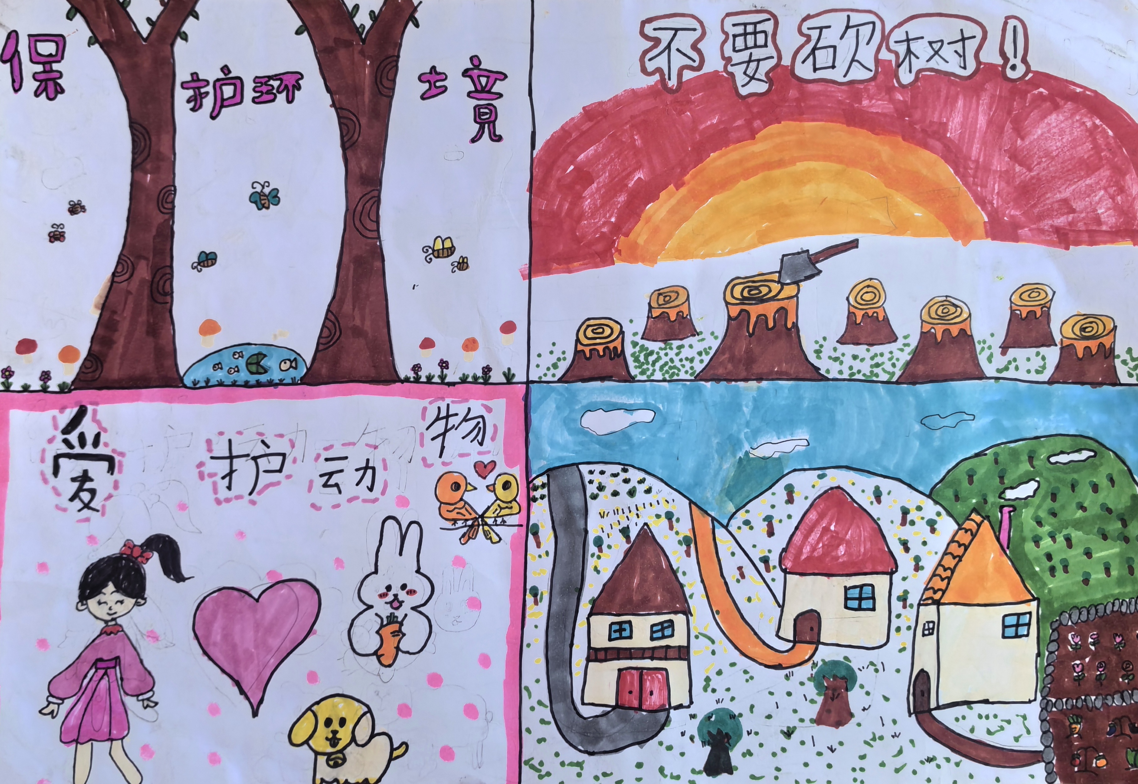 大家好,我给我的作品取名为《我爱我家》,这幅画我采用了四宫格的画法,每一格里面都是画了我想说的。在我上一年级的时候,我家附近到处都是茂密的山丛和清澈的小溪流。可是到后来这些东西慢慢的消失了。同时我很喜欢小狗,我也希望人们不要伤害动物。工厂能够寻求一个好的解决方法不要将污水排进河流,会对环境造成污染。我爱我家,所以我希望这里能有一个好的环境来供人们居住。