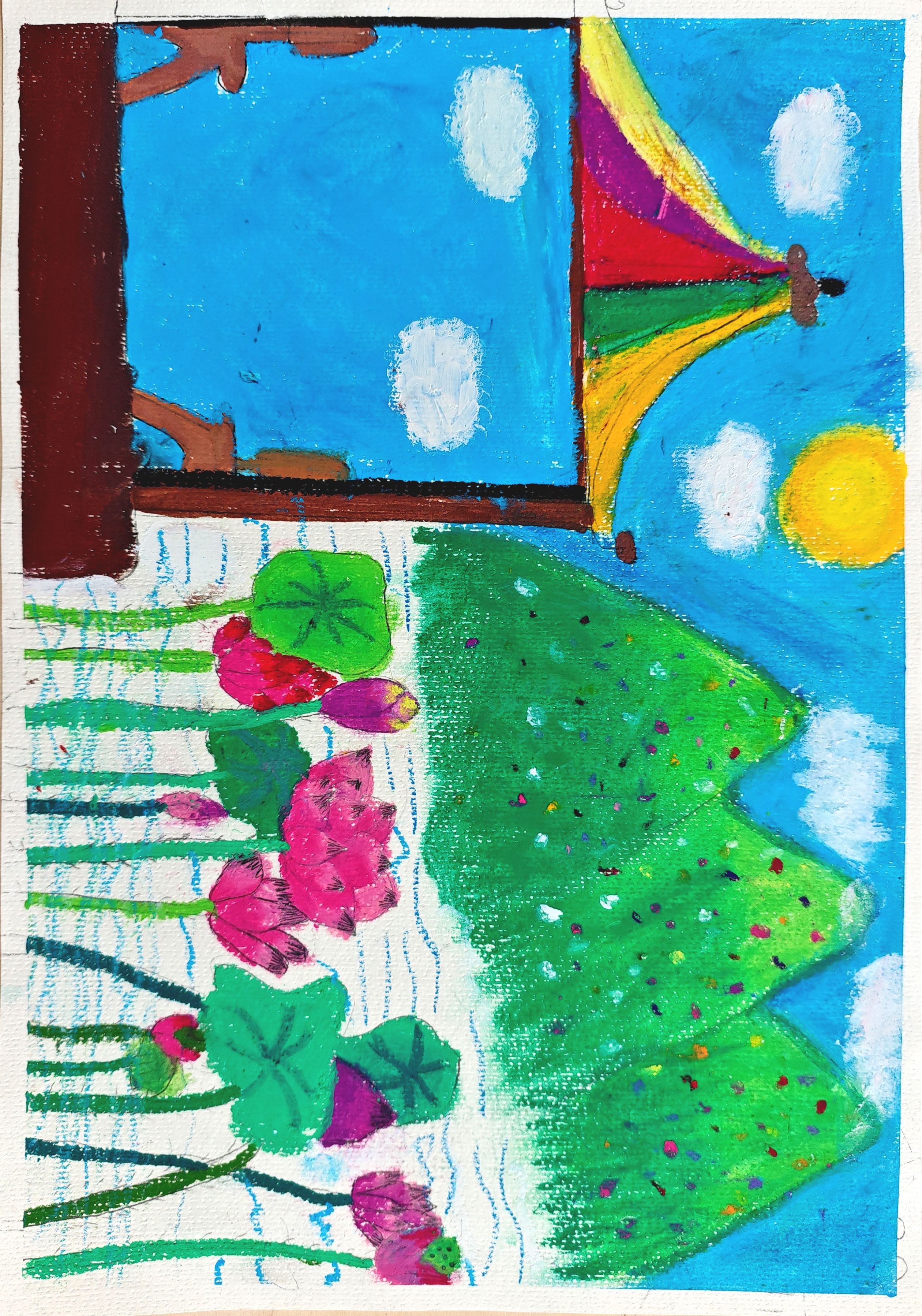 夏日荷塘,荷叶圆圆,荷花盛开,美不胜收。一阵微风吹过,荷叶摇曳,荷花轻轻摆动,仿佛一群美丽的少女在翩翩起舞。远处的山峦倒映在水中,与荷塘相映成趣,构成了一幅美丽的画卷。 荷塘旁的凉亭,是一处让人心旷神怡的地方。凉亭建在荷塘边上,四周被荷叶环绕,形成了一个自然的屏障。凉亭内设有桌凳,可以让人在这里休息、聊天、品茶。 在夏天,荷塘里的荷花盛开,凉亭就成了观赏荷花的最佳地点。我特别喜欢和我的小伙伴一起在凉亭里玩耍。坐在凉亭内,可以看到荷塘的全貌,荷花、荷叶、小鱼、蜻蜓等尽收眼底。一阵微风吹过,带来荷花的清香,让人陶醉其中。
