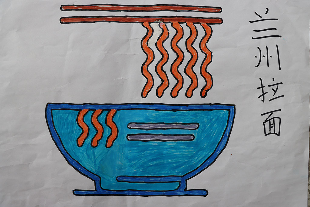 我画的是代表兰州的著名小吃—兰州拉面,兰州拉面有独特的风味和丰富的营养深受人们喜爱,它源于中国西北地区的兰州市,拥有悠久的历史和独特的制作工艺。 虽然我的画很简单,但我是甘肃人,所以我画兰州牛肉面。