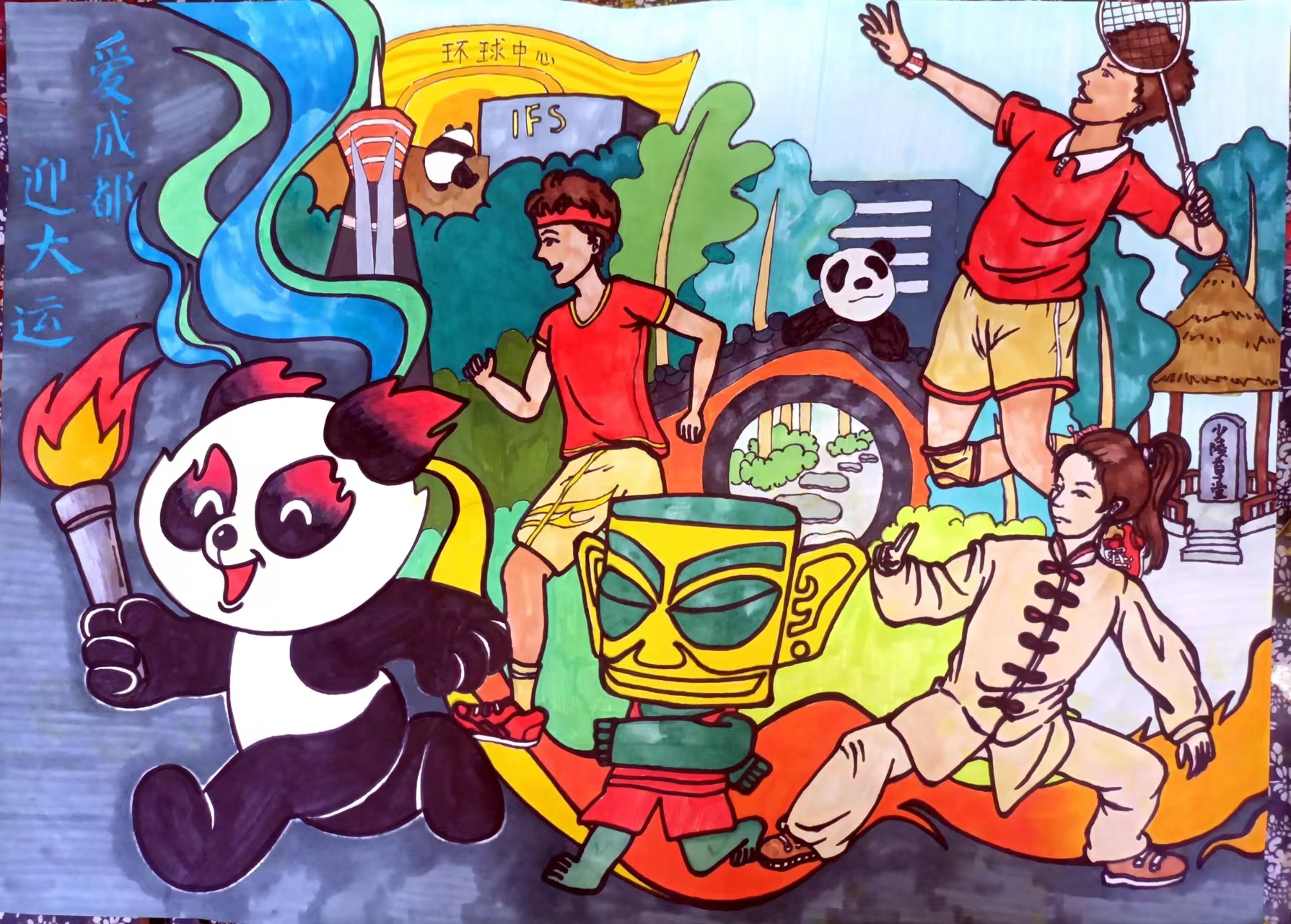 成都是一座来了就不想走的城市,她安祥、宁静,处处透着一股历史的底蕴.曾被誉为“全球最适合居住的城市之一。它时尚创新,有活力、有魅力,更是一座成就梦想的城市!作为成都一名小学生,,我们也在积极准备着,表达着我们对此次盛会的美好祝愿: 强身心、健体魄,我运动、我快乐。爱成都、迎大运,让我们每一位同学都为成都大运添光彩!