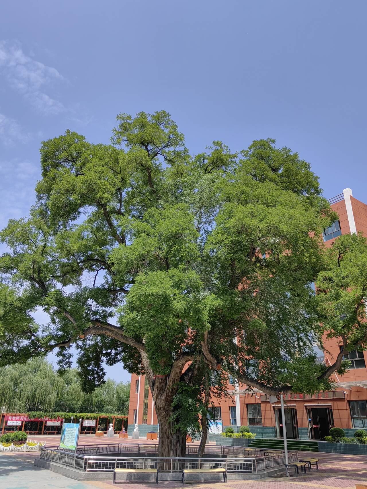 这棵郁郁葱葱、枝繁叶茂的百年古槐,相传是清朝道光年间什川镇魏卓来所栽,距今已有两百多年的历史,现为国家级保护古树名木。高约30多米,树围7米之多,五人方可环抱,苍老的树干平添了岁月的印记,虬莽的根系盘结于魏家庄这片热土,在流年往复中昂首傲对风摇雨沐,终挺立于此。