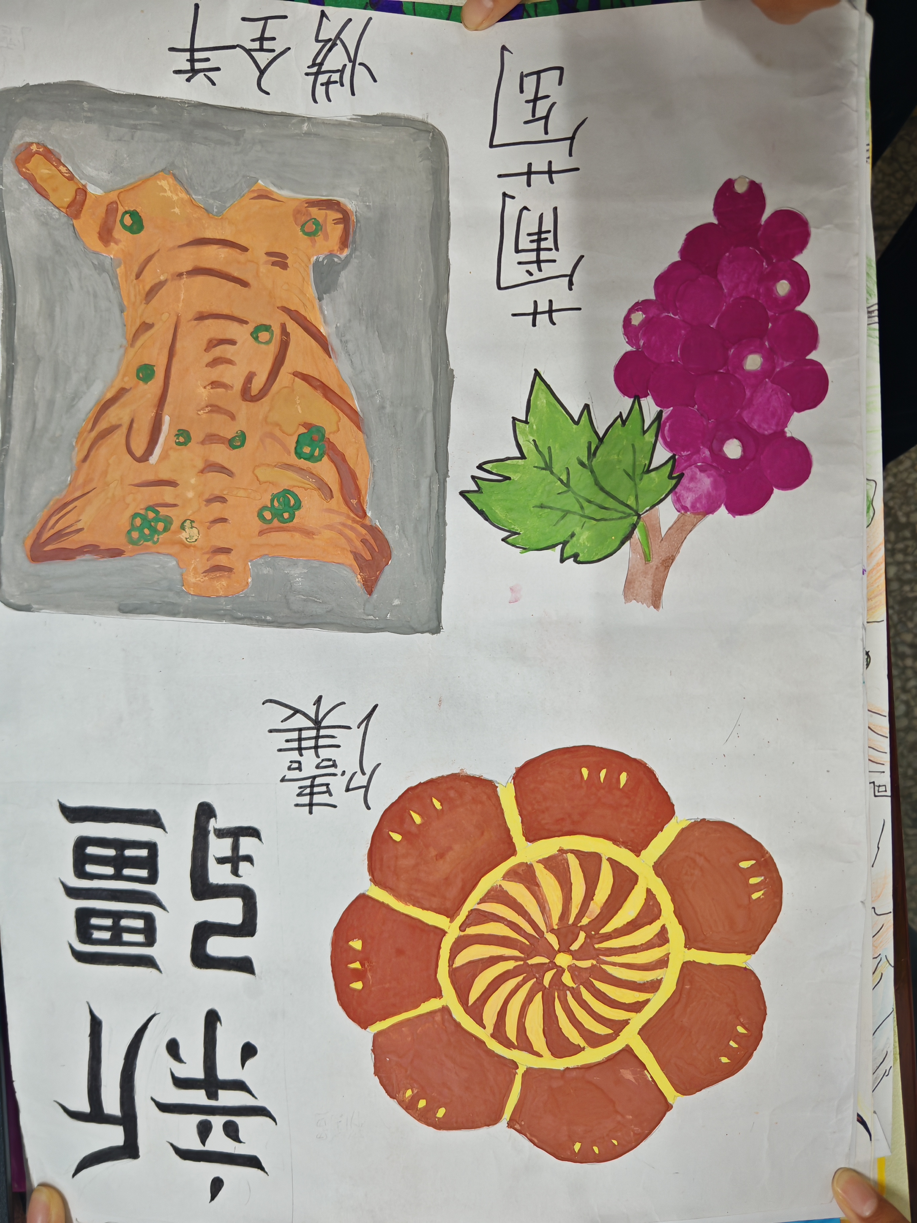 中国的文化有很多很多,但我唯独喜欢新疆因为那里的美食丰富多彩,我的画中有很多美食,比如:烤全羊,馕,葡萄,全是特色,而且那里人也非常友好,只要你一开口他们什么都拿的出来,他们的讲究也很多,他们的家里也是非常干净,而且他们的烤全羊还是一整个的,外焦里嫩,葡萄有大的有圆的,他们的服装五颜六色整齐划一。