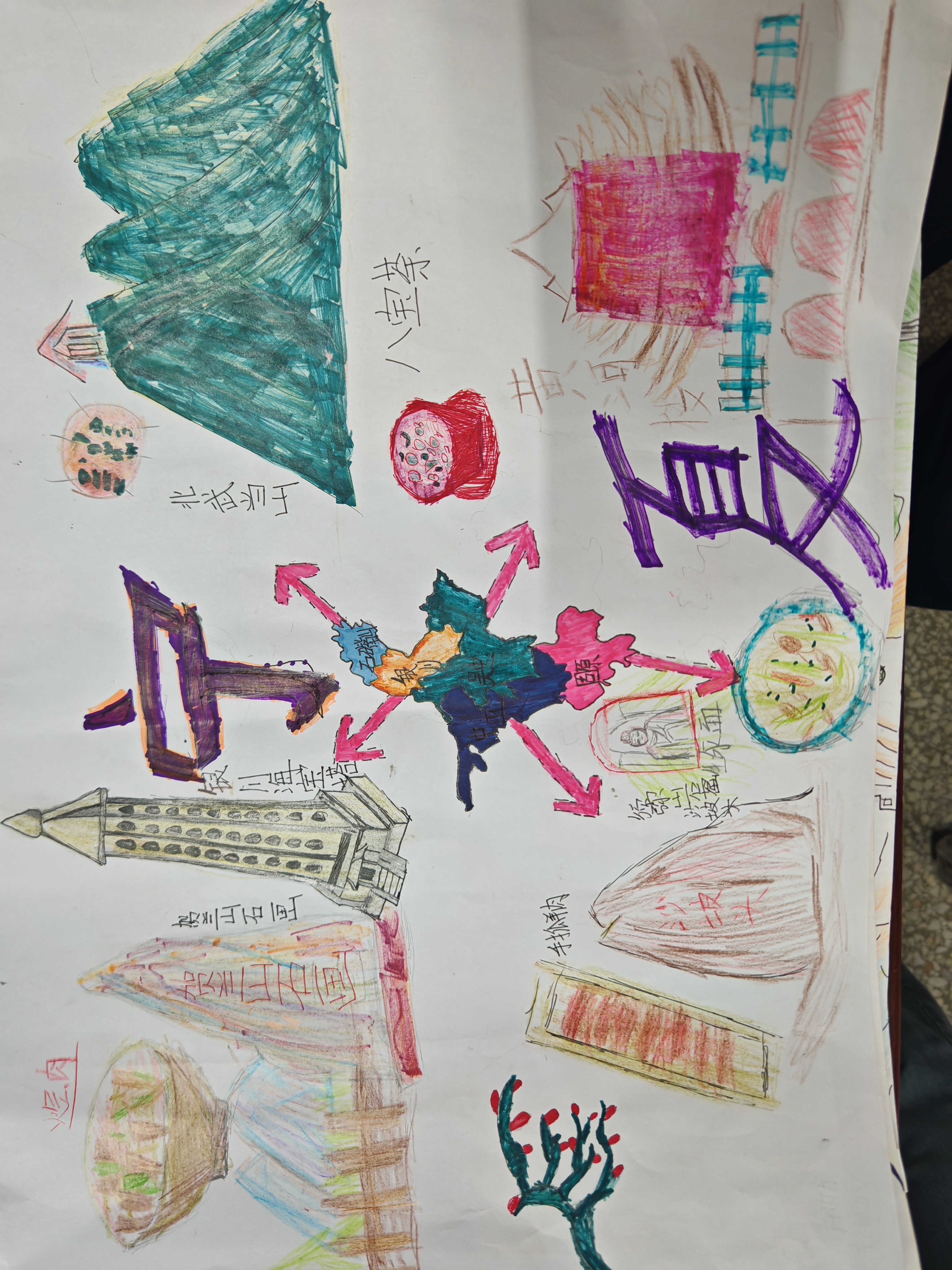 我的这一篇作品是以地方特色为主题,从而选了宁夏特色为这幅画的名字。首先,我将画一个宁夏的地图,再将每个市区用笔描了边,标上了地区名,这样第1步就完成了,再次在边上画出这个市区的大型建筑,特色建筑后第2步完成了,我又把建筑旁的空白位置画上了宁夏特色美食,第3步完成了。开始第4步将颜色上好,便一张宁夏特色的画完成了。 我把地图画成了五色,便代表了中华民族不同地区不同习俗的多样性,以及我对家乡不可代替的喜爱。