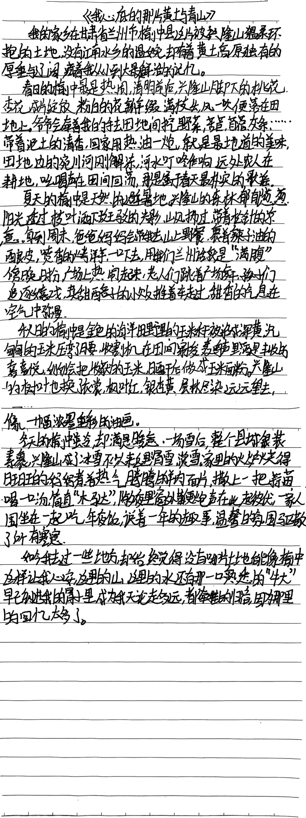 以榆中四季为线索,构建“自然+人文+情感”的三维家乡叙事: 季节景观层:春日桃花野菜、夏日山林野餐、秋日玉米红叶、冬日雪后年味,通过不同季节的典型场景,展现黄土高原与兴隆山交融的独特风貌,让家乡的自然质感具象可感。 生活记忆层:串联挖野菜、吃酿皮、做玉米面粉、过年吃牛肉面等生活细节,将美食、劳作、节庆与亲情绑定,挖掘家乡“烟火气里的温暖”,让个人成长记忆成为家乡的鲜活注脚。 精神归属层:对比他乡与榆中的情感差异,强调家乡的山、水、“牛大”已融入血脉,成为无论走多远都牵绊于心的精神归宿,最终落脚于“黄土与青山滋养的乡愁,是永恒的心灵坐标”这一核心,诠释家乡在地理、生活、精神层面的多重价值。