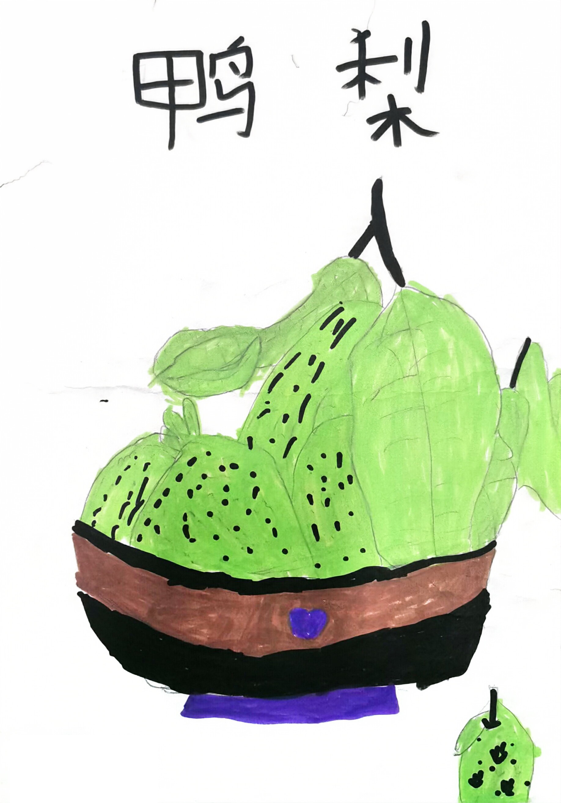 大家好!我画的是《鸭梨等你来观光采摘园》。咱们这儿的鸭梨又大又脆,挂满了果树,特别诱人。来这儿观光旅游,你可以走进果园,亲手摘下甜甜的鸭梨,还能欣赏田园风光。咬一口鸭梨,又甜又多汁,好吃极了。希望大家快来鸭梨之乡,观光采摘,尝尝美味的鸭梨,感受这儿的独特魅力,玩得开开心心!
