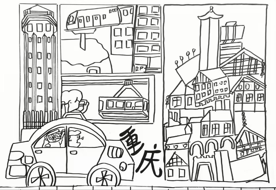 大家好!我画的是《重庆魔幻城市大冒险》。重庆可神奇啦,有超酷的轻轨穿楼,还有索道在空中飞,高楼大厦长得可有特色了。开着小车在重庆的路上,到处都是惊喜。这里的建筑、交通都像在玩冒险游戏,超有趣的。欢迎大家来重庆开启魔幻大冒险,看看轻轨、坐坐索道,保证你们玩得不想走哦!