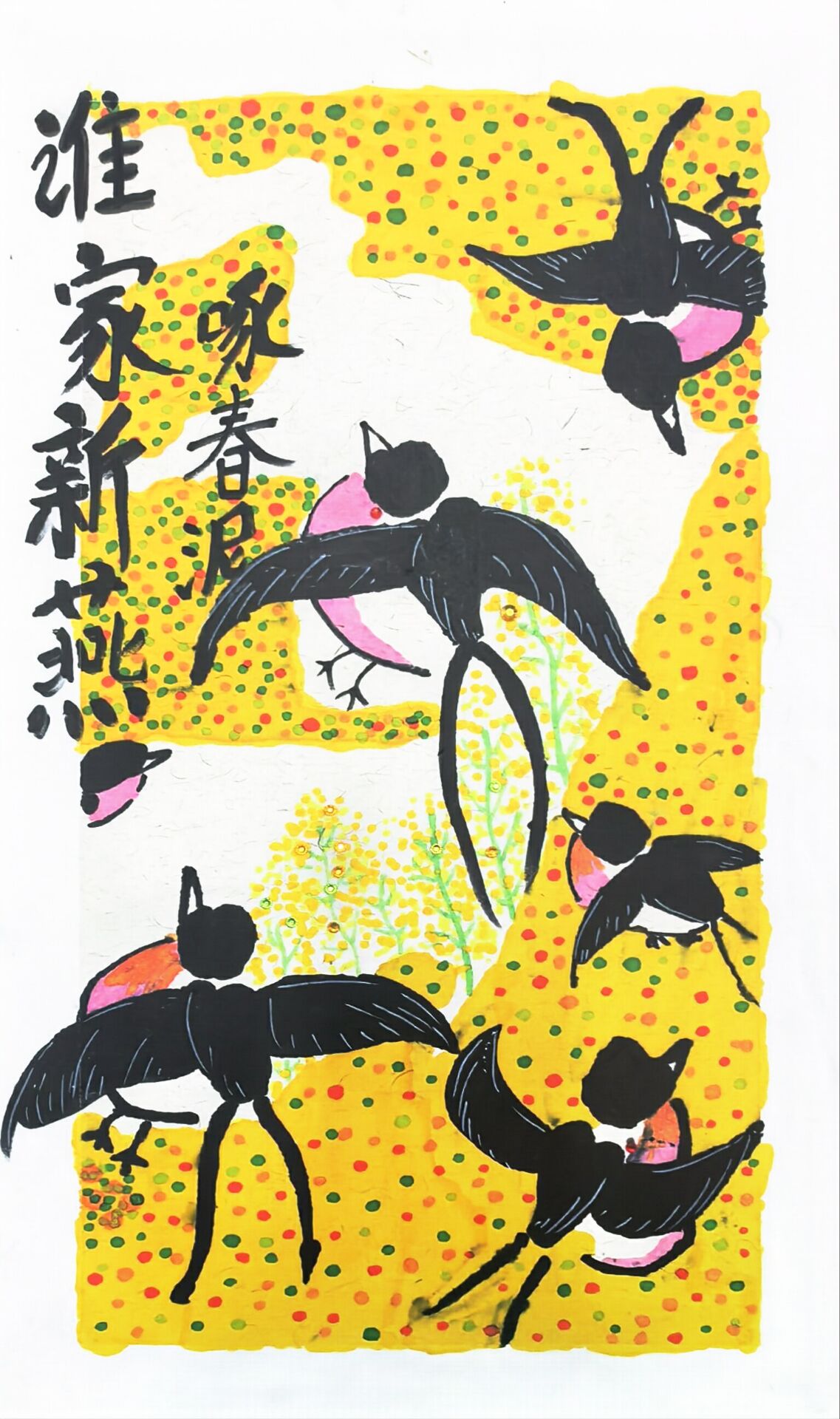 大家好!我画的是《春燕啄泥闹新春》。你看,好多小燕子在春天里飞来飞去,它们在啄春泥准备做窝呢。春天的景色黄黄的,还有小花,特别热闹。小燕子是春天的使者,每次看到它们就知道春天来啦。欢迎大家来看看这些可爱的春燕,保证你们会爱上这充满生机的春天哦!