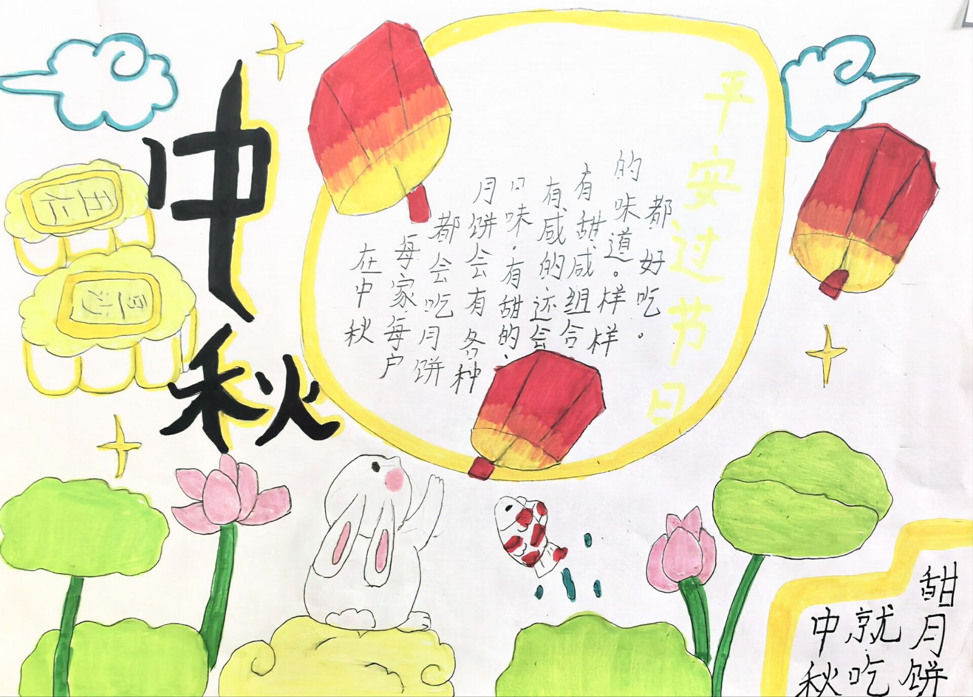 大家好!我画的是《中秋团圆欢乐园》。你看,有可爱的玉兔、红红的灯笼,还有甜甜的月饼和漂亮的荷花。中秋是团圆的节日,大家会一起吃月饼、赏月。每次过中秋都超开心,就像画里一样热闹。欢迎大家来中秋团圆欢乐园,感受中秋的快乐,保证你们会爱上这个充满团圆气息的节日哦!