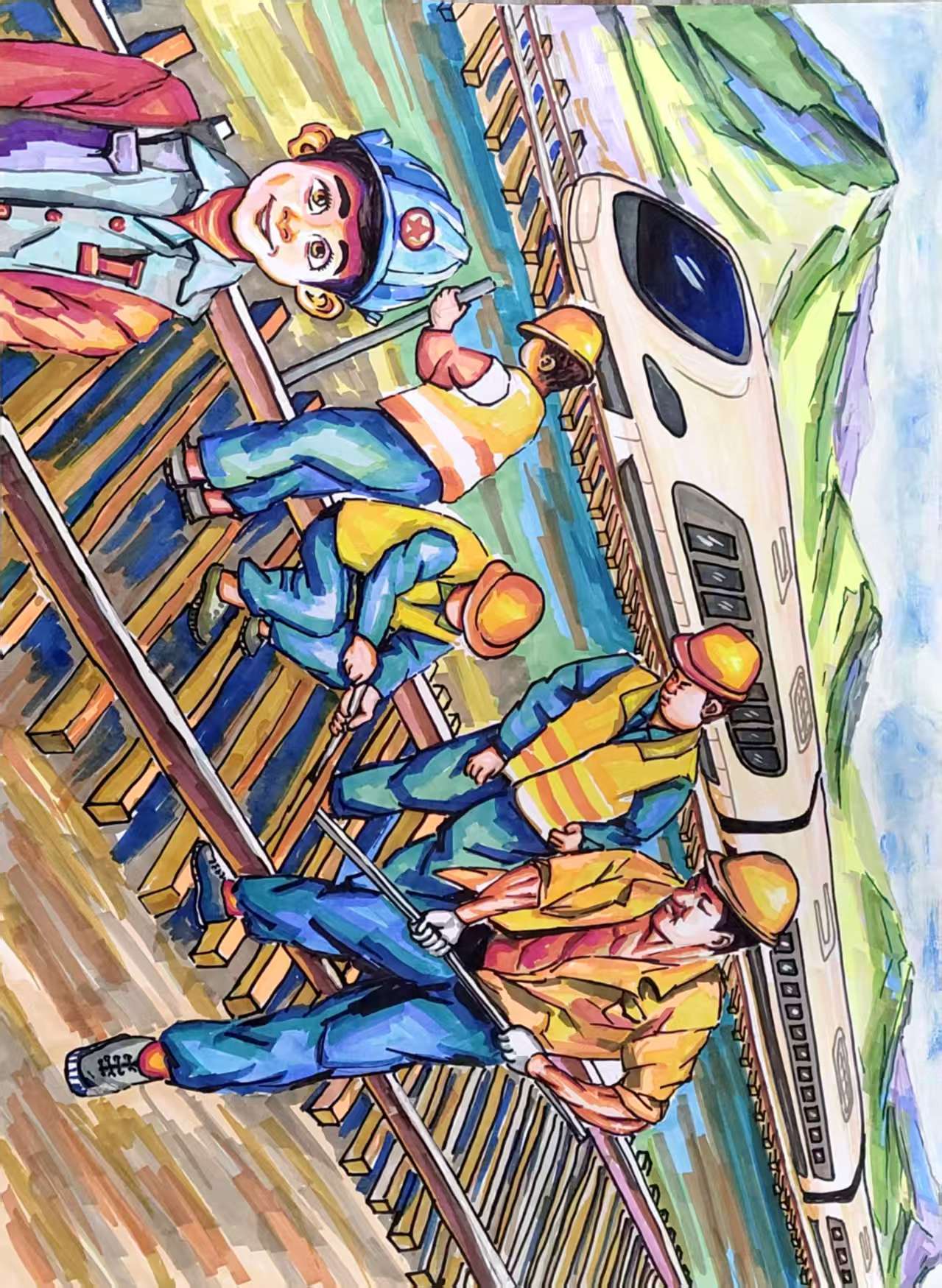作品以 "劳动最美丽、最崇高、最伟大、最光荣" 为核心,践行 "劳动是财富与幸福生活的源泉" 的理念,聚焦铁路工人的劳作场景,描绘 "我" 参与铺路、维修的劳动体验。 画面中,"我" 身着工装,与铁路工人一同挥锹平整路基、紧固铁轨螺丝,汗水浸湿衣衫却眼神坚定。钢轨延伸向远方,工具整齐摆放,阳光洒在忙碌的身影上,尽显劳动的力量与温度。 通过沉浸式展现铁路建设的具体过程,既凸显铁路工人的辛劳与坚守,更表达 "我" 对劳动的热爱与敬畏。让观者感受到劳动创造价值的真谛,传递尊重劳动者、崇尚劳动实践的正能量。