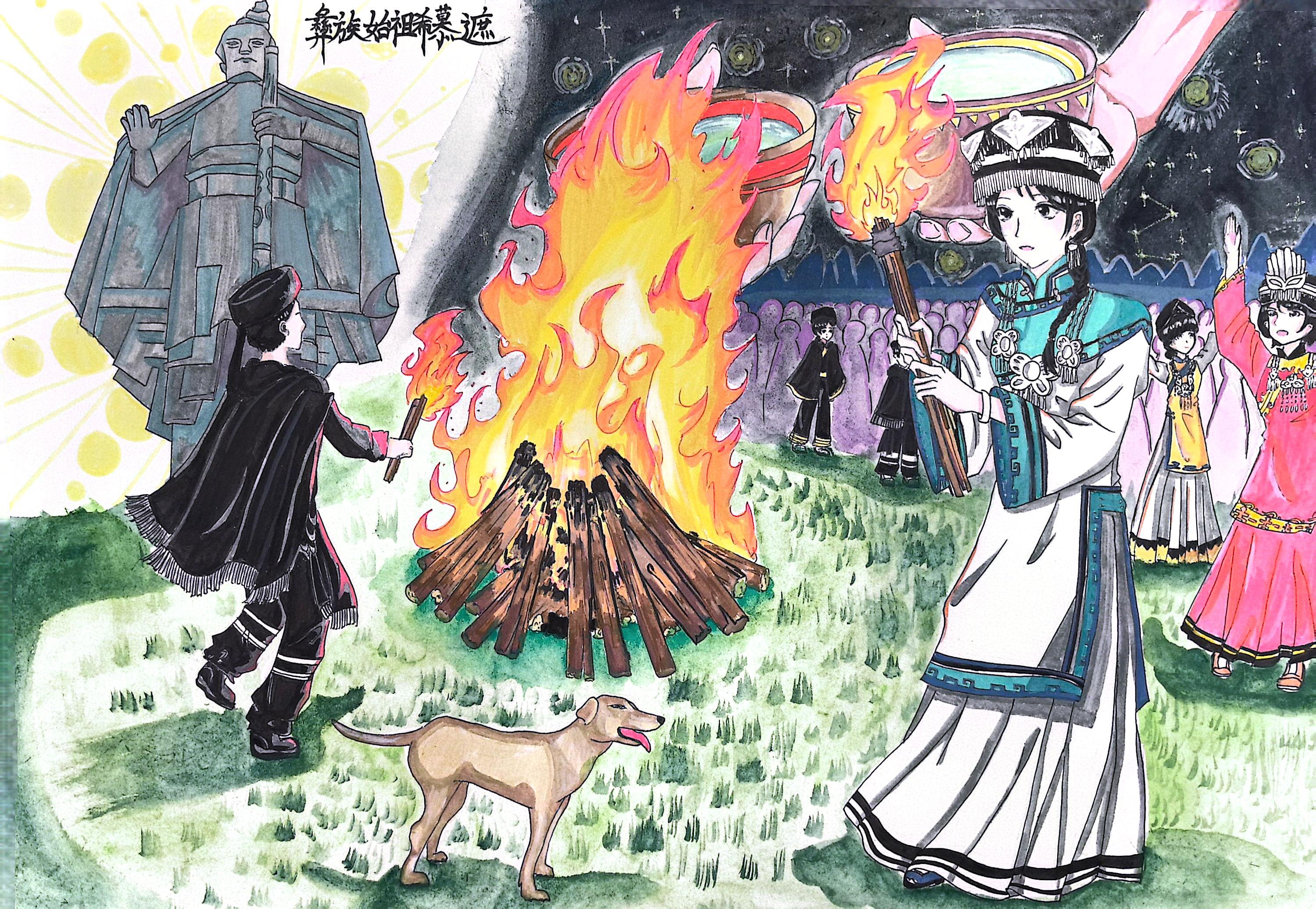 四川大凉山地区居住着很多少数民族,其中彝族居多,他们热情好客。每当宴会时,都会先以敬酒为先,家家户户走访都以酒为礼。其火把节有保佑丰收驱害虫之意。男女老少围着火炉纵歌载舞。拿着火把去田间走动。在夜里,犹如繁星点点。女性民族传统服饰都以戴头巾为主,银饰装伴是后来青年人喜好而戴。