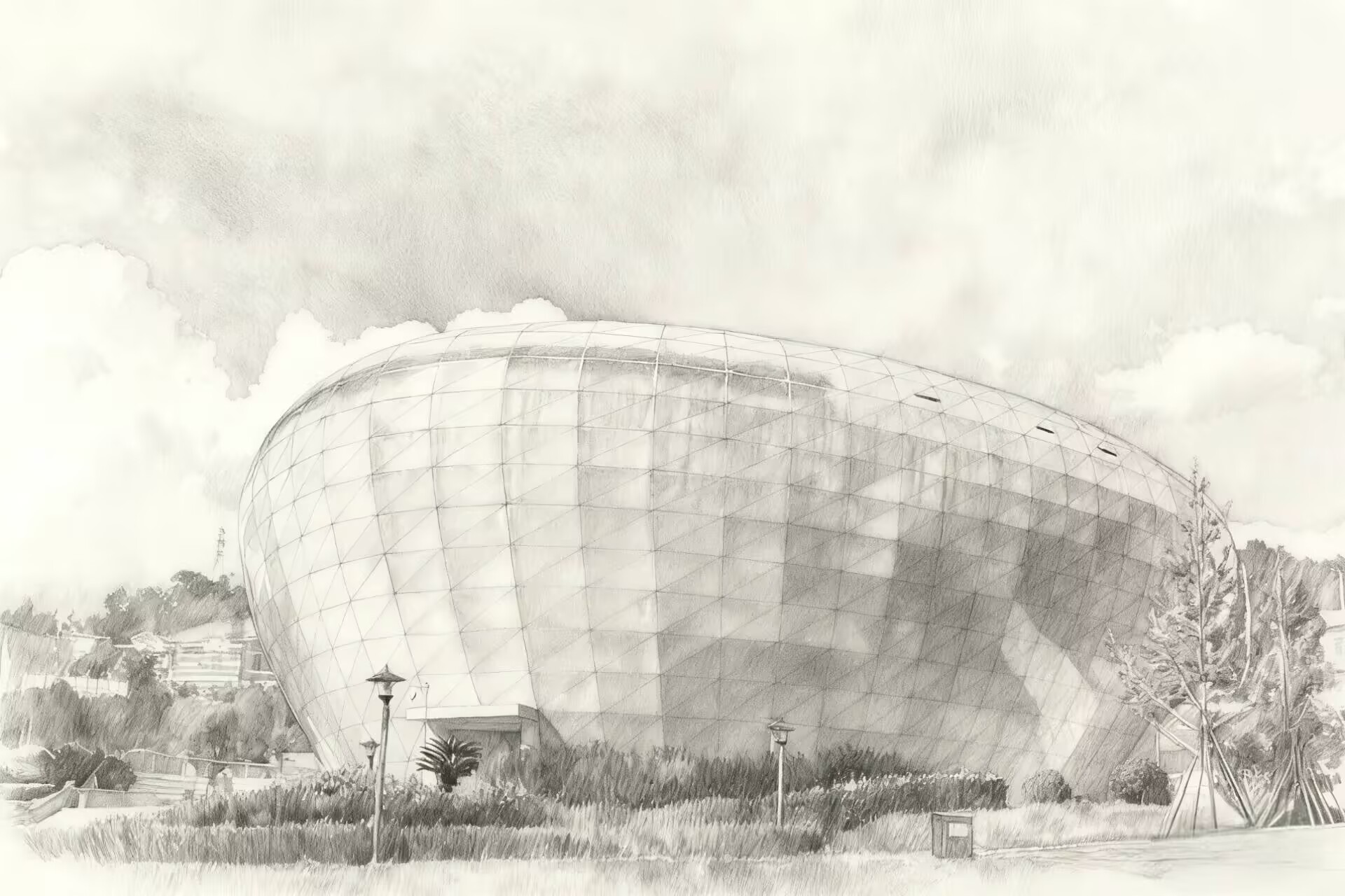 通过极简而富有张力的黑白素描语言,将通江县银耳博物馆这一现代建筑,升华为一个连接自然、历史与未来的文化符号。它既是对银耳这一"菌中之冠"的视觉礼赞,也是对通江地方文化自信与可持续发展愿景的深刻诠释,又通过朴素而富有感染力的铅笔素描艺术,将通江银耳博物馆这一地标诠释为自然物产、人文精神与建筑美学完美融合的象征。它既是对地方特色文化的礼赞,也是对创新、传承与和谐发展理念的视觉化阐述,是一幅充满敬意、希望与艺术深思的作品。