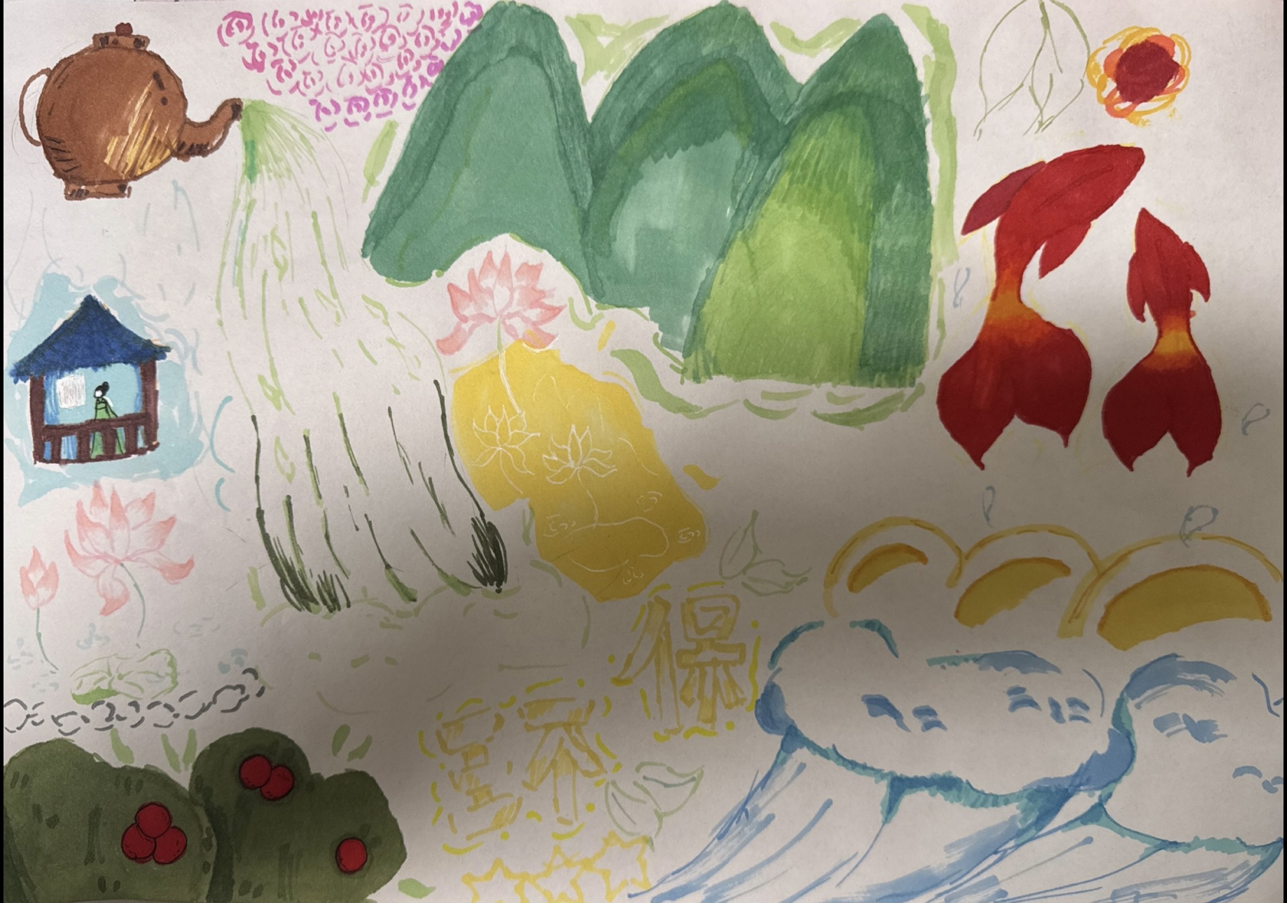 在新场古镇有很多茶馆,一到休闲时刻每个茶馆都人满为患。茶馆的屏风上有一朵朵待绽的荷花,显得清新淡雅。池塘中的水波荡漾,鱼儿们在欢快地嬉戏。远处的青山隐密在云中,好似一幅山水画。 从茶壶倒入杯中的瞬间好似绿色的瀑布,如青山的绿,让人心旷神怡。 茶是新场古镇人们休闲时放松自己的良药。
