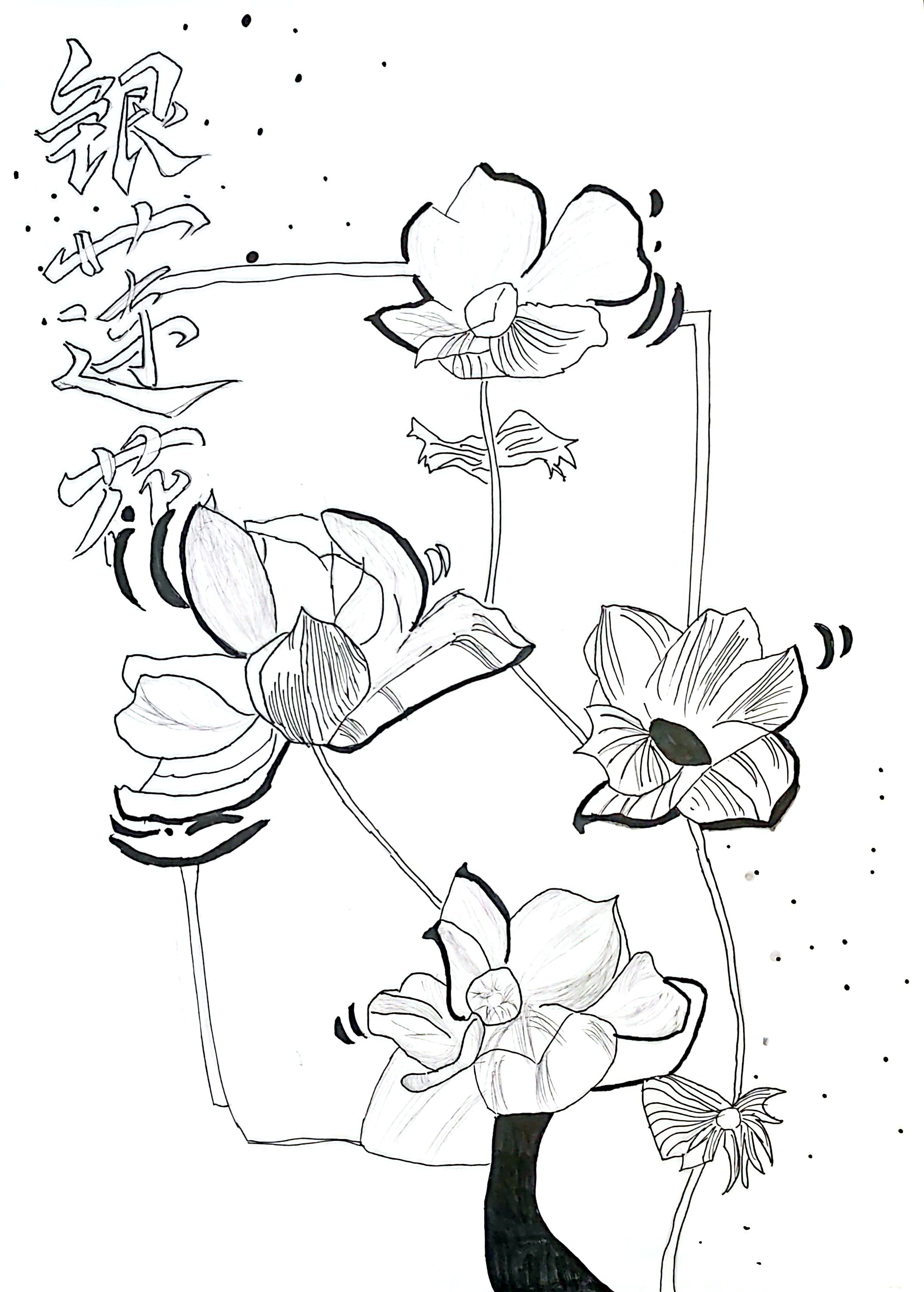 这幅《银莲迭香》以线描绘莲,其"宝相莲"的花型直接脱胎于敦煌壁画的核心纹样——莫高窟壁画中,宝相莲是佛国世界的标志性装饰,而西北作为敦煌艺术的发源地,正是这种纹样的文化母体。画中花瓣的层叠造型、线条的卷曲韵律,复刻了敦煌藻井"缠枝宝相莲"的构图逻辑,"银莲"的素雅色调,既显现世花卉的清丽,也藏敦煌壁画中"莲华净土"的圣洁寓意。它将西北石窟里的宗教纹样,转化为现世花卉的艺术表达,让花瓣的柔婉与线条的劲挺,凝成敦煌美学从宗教走向生活的生动转译,也让一朵莲成为西北文化美学的现世载体。
