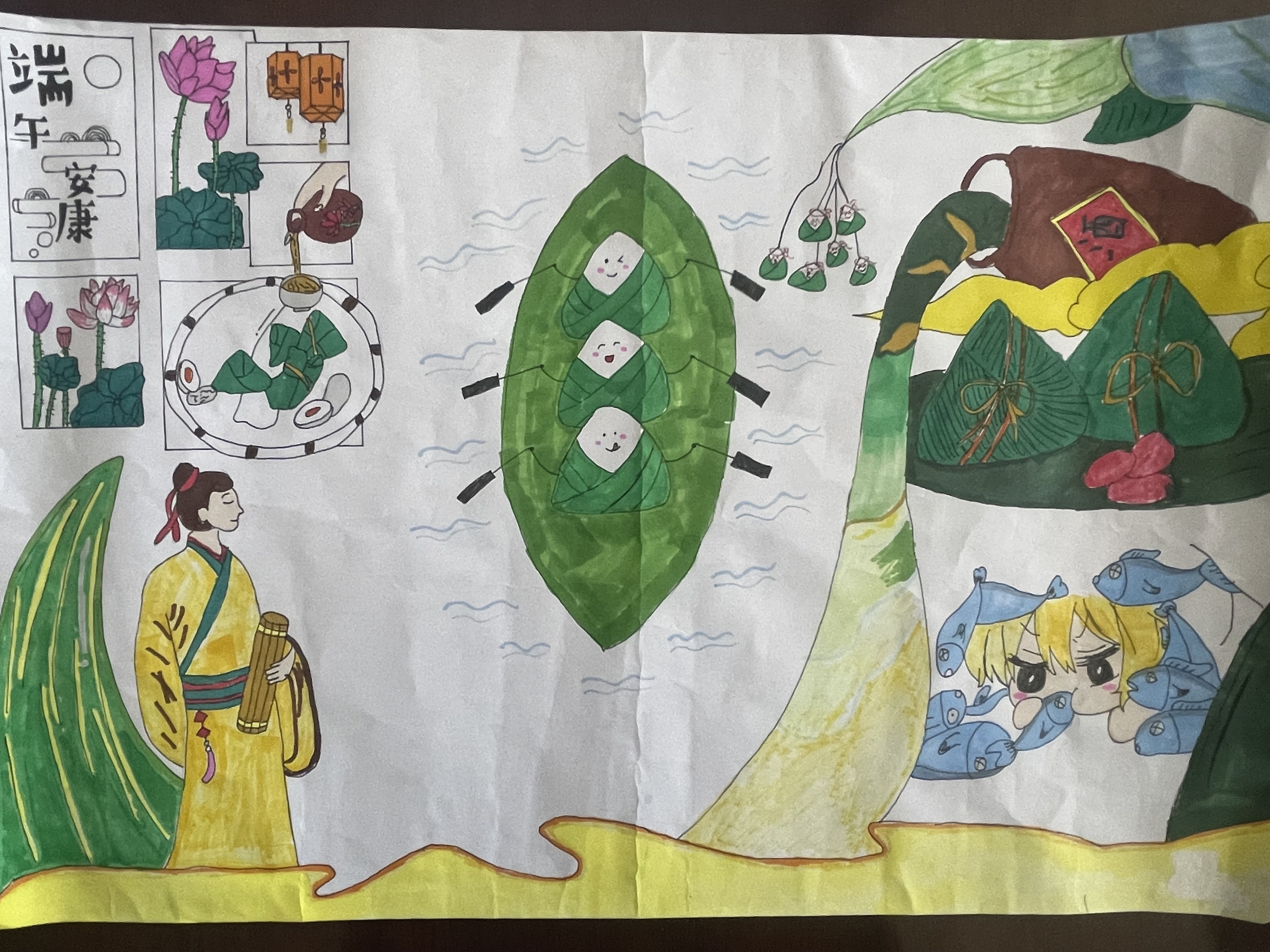 古代祭龙与驱疫传统端午节最初源于古代对龙的祭祀,与夏季驱除瘟疫的习俗相关。古人认为五月是"恶月",五日为"恶日",需通过特定仪式驱邪避灾。例如,挂菖蒲、艾草等植物,利用其香气驱赶蚊虫、净化空气;饮雄黄酒,以药性抵御疾病。这些习俗体现了古人对自然力量的敬畏与对健康生活的追求。