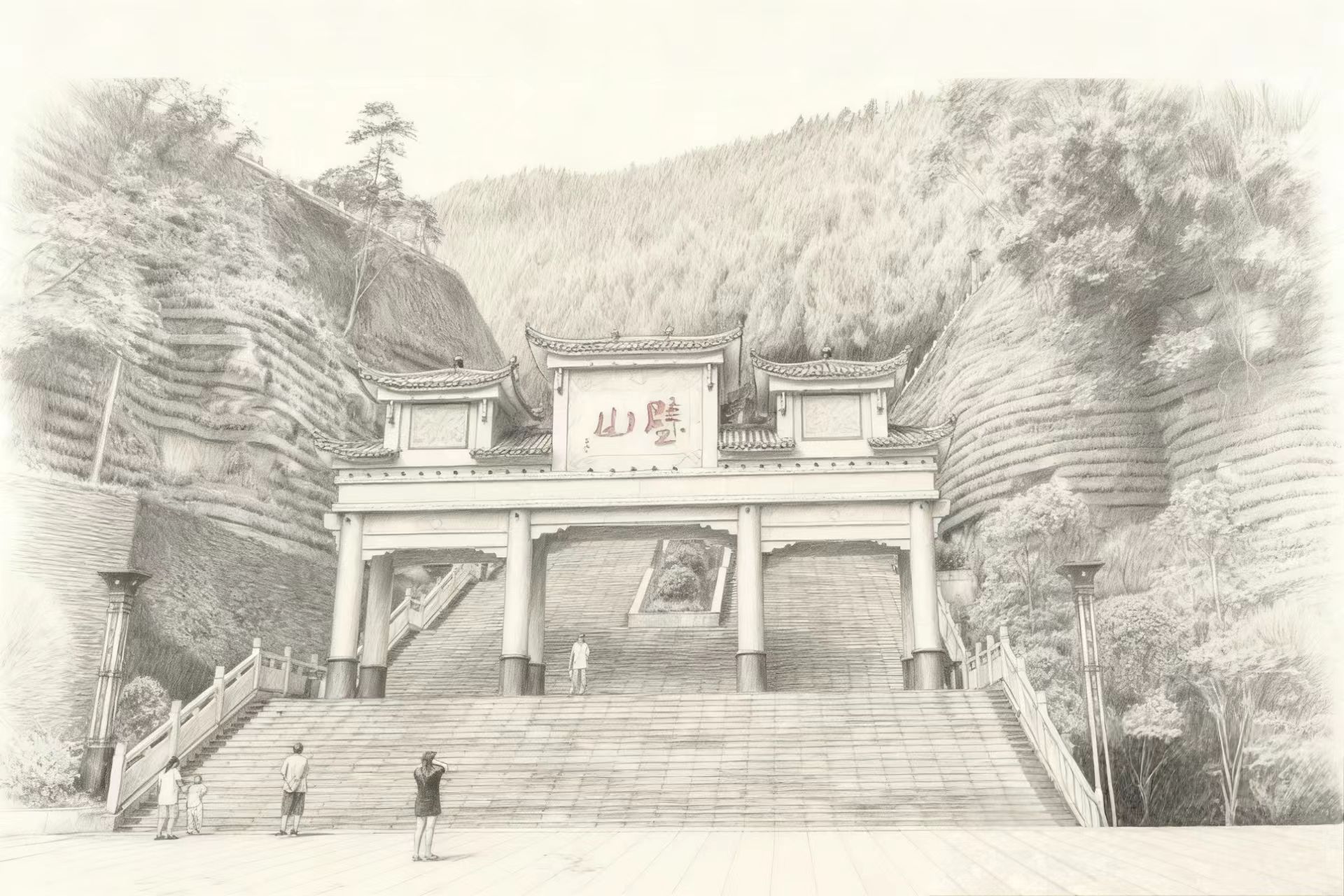 用最朴素的素描语言,完成一次从人文到自然的诗意过渡。它不仅仅是对景物的客观记录,更是艺术家对"壁山"这一场所精神的提炼与颂扬,邀请观者穿过这道画中之门,步入一个既真实又充满想象力的灵秀之境。展现壁山景区作为一方灵秀之地的独特魅力。 "由人文之序,入自然之胜"