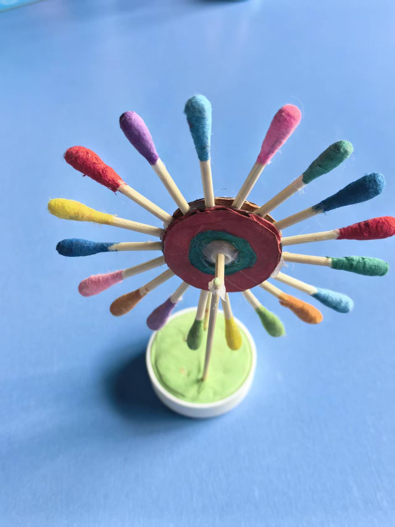 五彩的小风车在风中旋转,童年的快乐在笑声中晕染。小小的棉签,五彩的画笔,让我们把美好的愿望融入指尖。让自然界中风转化为力量,成为可持续利用的能源。五彩风车融合了传统的吉祥寓意,承载对美好生活的期许,体现了人类与自然和谐共生的智慧。
