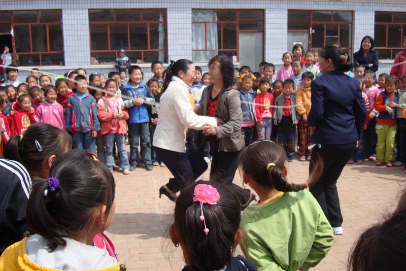 我知道我们小孩子的天性就是爱玩,可我从来没发现过老师们在院子里蹦蹦跳跳的玩过。在我的影响里老师就是每天讲课、辅导学生、判作业,因为他们已经是大人了,不喜欢玩。今天却让我改变了对老师的看法。