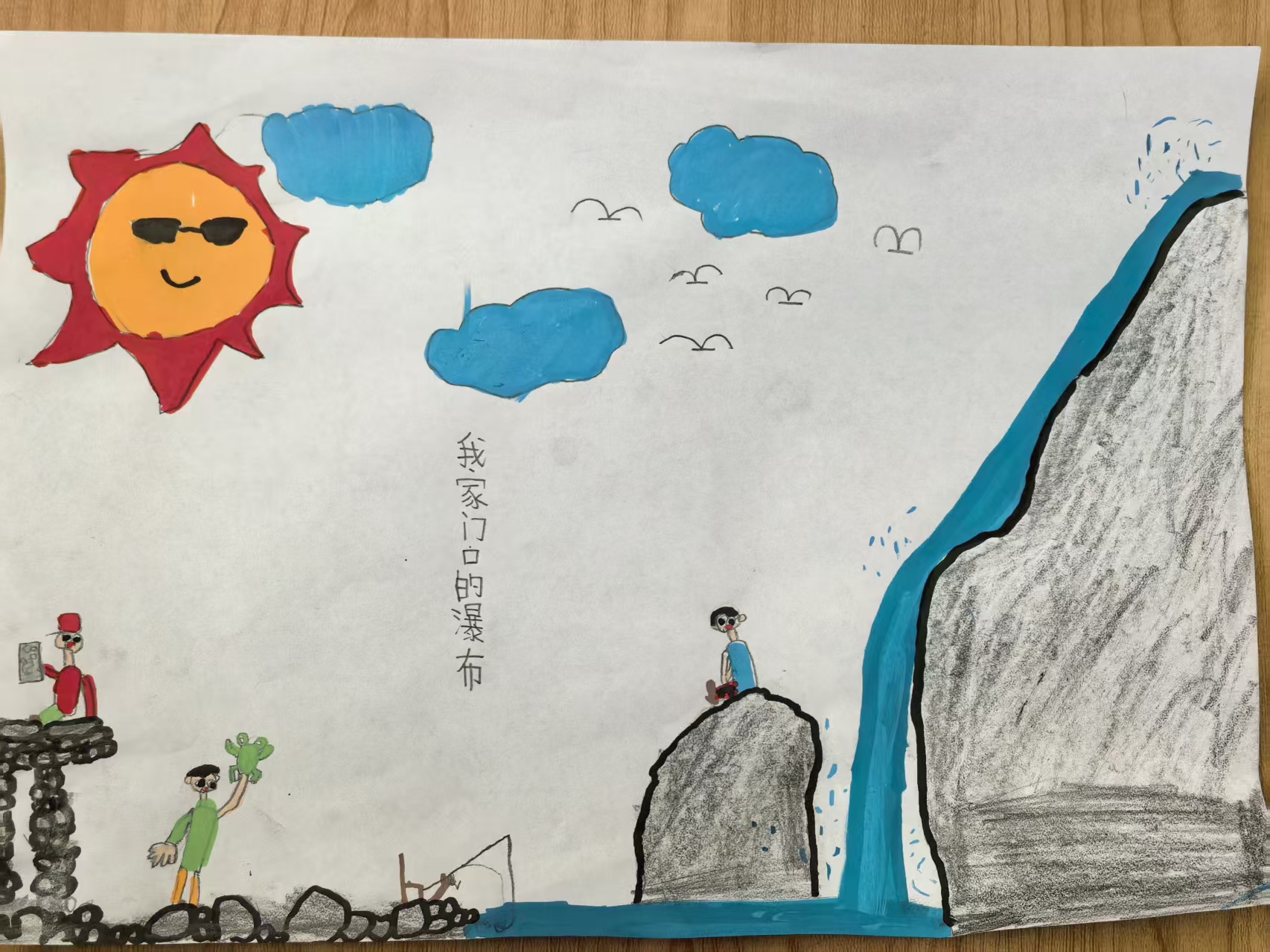 我在电视上看见过很多瀑布。有"飞流直下三千尺的庐山瀑布"有气势宏伟的黄果树瀑布,但我最喜欢我家门的瀑布---半水岩瀑布。在水量充足的夏天,这瀑布也同样雄伟壮观,一道水流从高高的山崖飞泻而下,声音震耳欲聋。水流跌进深潭水花四溅,周边景物都笼罩在薄的水雾中。盛夏,爸爸常带我去瀑布下纳凉抓螃蟹,还有人在那里钓鱼,游客在那里拍照。我爱家乡,我爱家门口的瀑布。