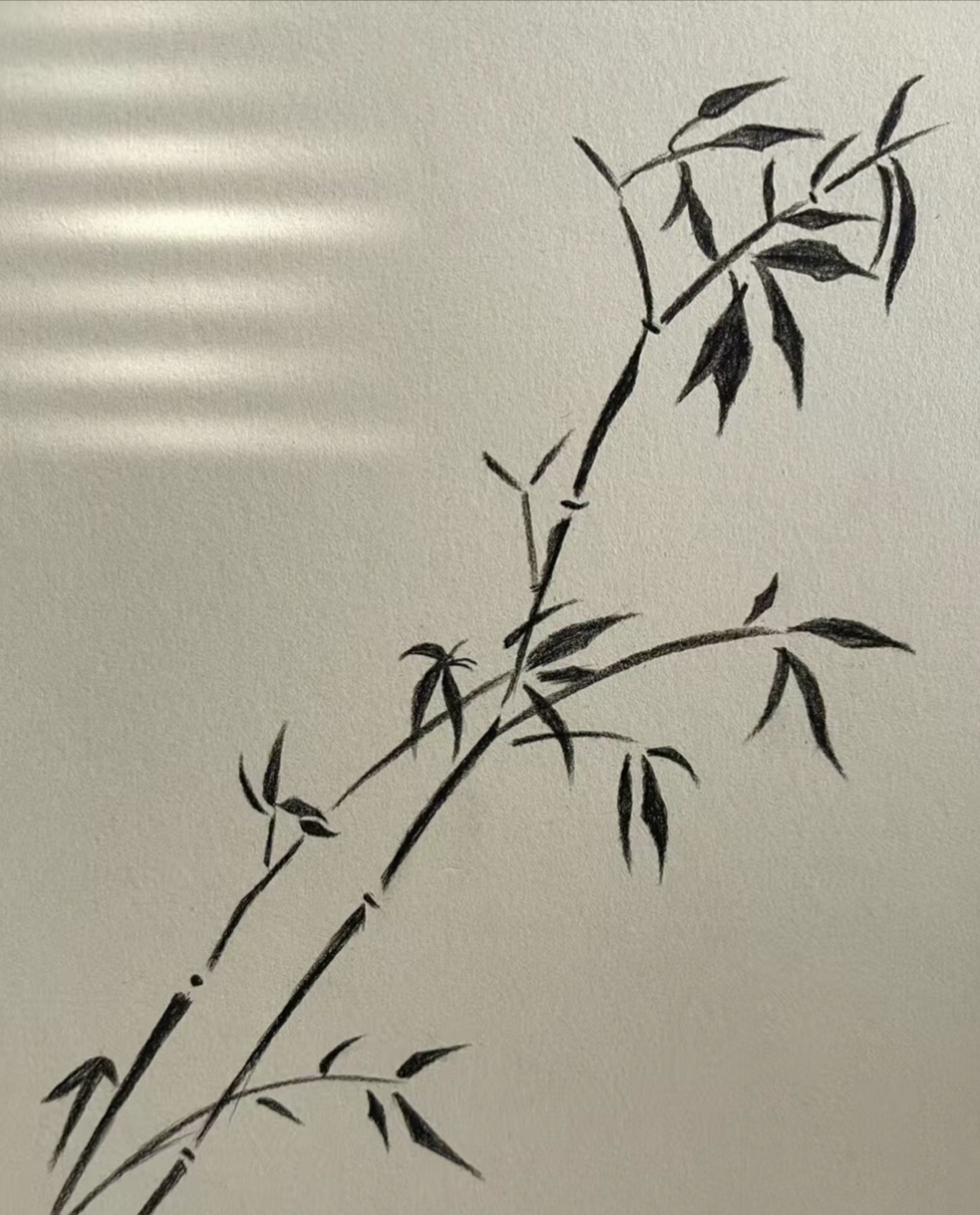 《墨竹寄情》: 这幅画墨竹数枝,以笔为媒,传递情思。竹杆挺拔如君子立世,叶片舒卷藏着诗意。借传统国画墨竹之法,将 "莫听穿林打叶声" 的豁达,融入枝叶间,让墨色流转里,尽是对竹之精神的敬仰与共情 。让我们一起守护她。