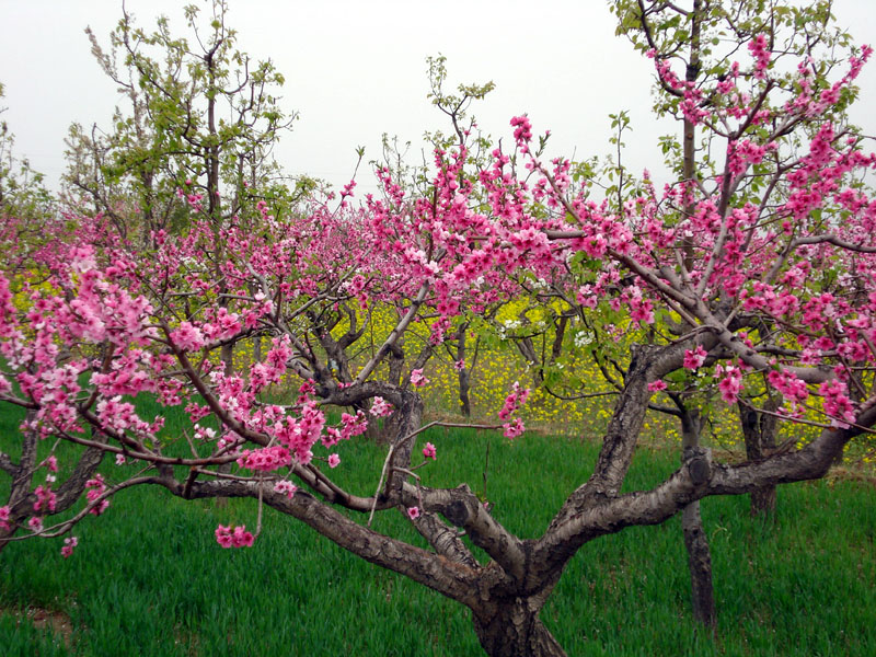 虽说是桃花,但是也有少许白色的梨花和黄色的油菜花。