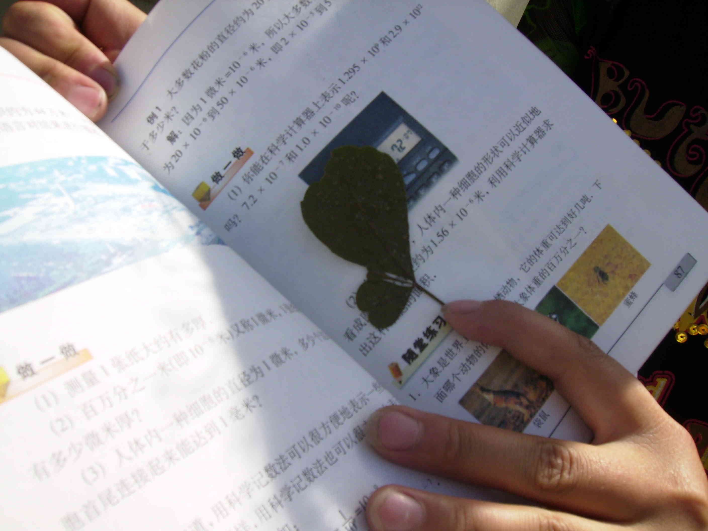 八焦扇形状较大,样子也比较普通,但它无形中有一种东西在吸引着我,让我对它有一种独特的感觉。把它收集在里面还有一段小故事呐。那天我心情不太好,我感觉自己好孤单,此时,我看见一片树叶孤单的飘着,我就想它跟我真是同命相连。就这样我把它捡回了家,我想让它不要和我一样孤单,想让他有人陪伴,因此当我孤单时我会找它来谈谈,来倾诉自己的烦恼。由于它叶柄长的缘故,我选它做了书签,我想让它永远陪伴我。还有一片杨树叶,我喜欢它的小巧与可爱,它的周围都是小锯齿,我喜欢它与白杨树一样的精神。