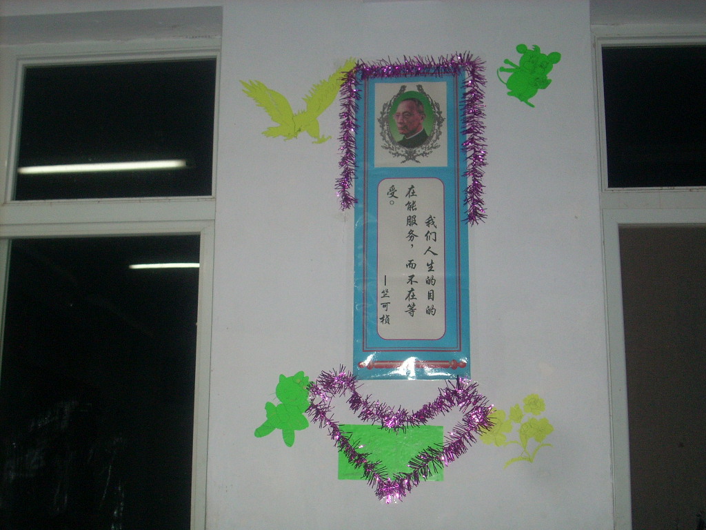 同学们剪了字,贴在了图画的周围.工夫不负有心人,经过同学们的精心制作,教室里布置的整齐的多了.我们也达到了学校的要求,团结就是力量,付出就是收获.我们也得到了学校的表扬.