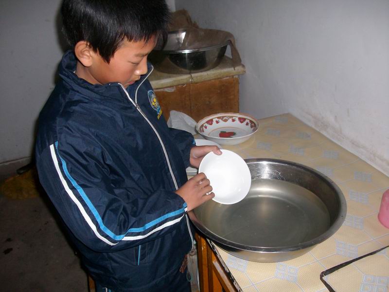 首先我向妈妈请教了洗碗。妈妈告诉我,如果遇到有油腻的碗,首先要用洗涤剂先清洗一遍再用清水冲洗。我照着妈妈的话耐心的开始了。可是碗和手之间好像没有了摩擦似的,我怎么也抓不稳碗,曾几次差点把碗打碎,所以只好慢慢的洗,终于第一遍清洗干净了,第二遍就轻松多了,妈妈又教我一手转碗一手洗,这样可以快一点。我试了几次,可两只手就是不配合。没办法只好端起碗慢慢的洗,像这样的技巧活儿只有慢慢熟练了。不过我还是掌握了洗碗的基本要领。