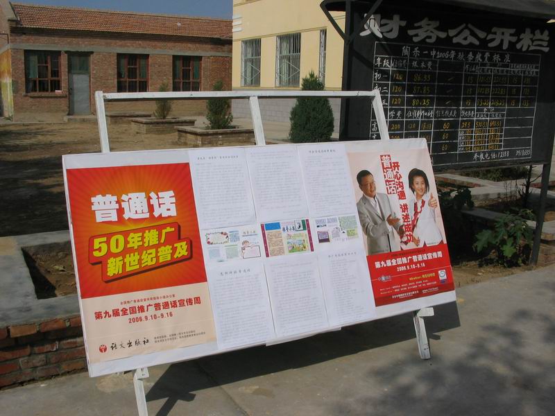 在校园里到处都可以看到要求大家说普通话的标语,我们的老师又在班里要求大家,所以同学很重视普通话的练习,下课和同学老师的交流都用普通话来说。大家的普通话在不断的提高。那位同学也勇敢的在班里回答老师的问题,并用普通话和大家交流。