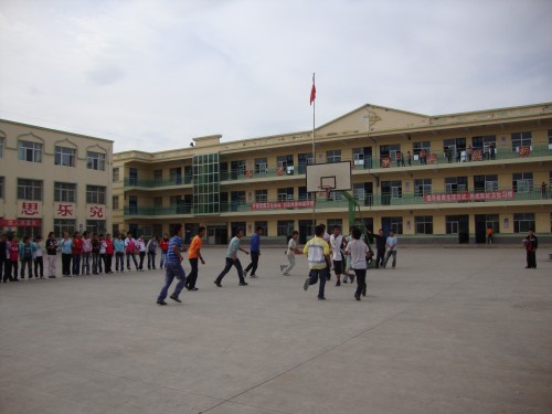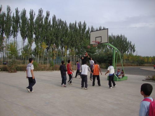 为庆祝祖国母亲六十岁的生日,学校组织了一场别开生面的篮球赛。