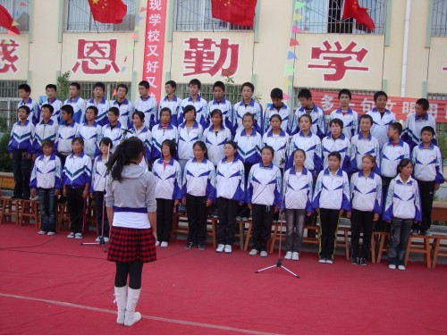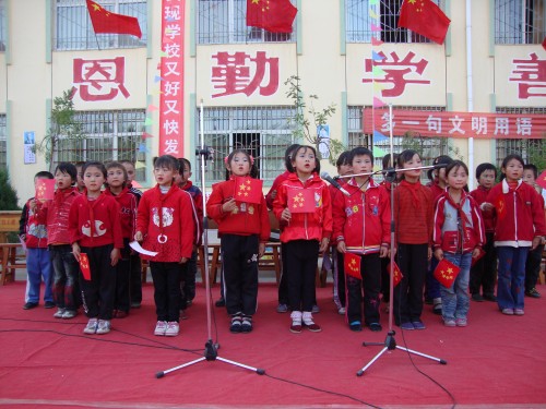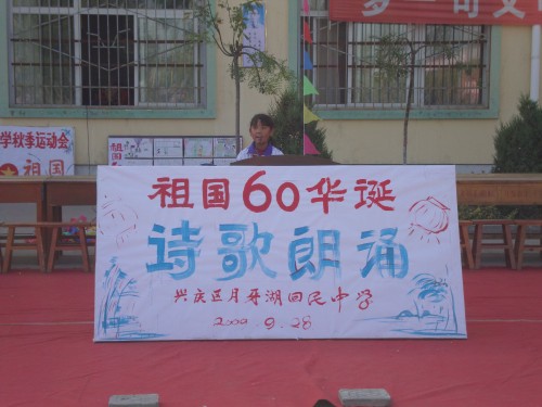随着祖国60华诞的步步临近,学校里组织同学们开展了一系列活动,最让人值得赞叹的就是庆国庆大合唱与朗诵。这次活动让我深深感受到了同学们的爱国情怀。