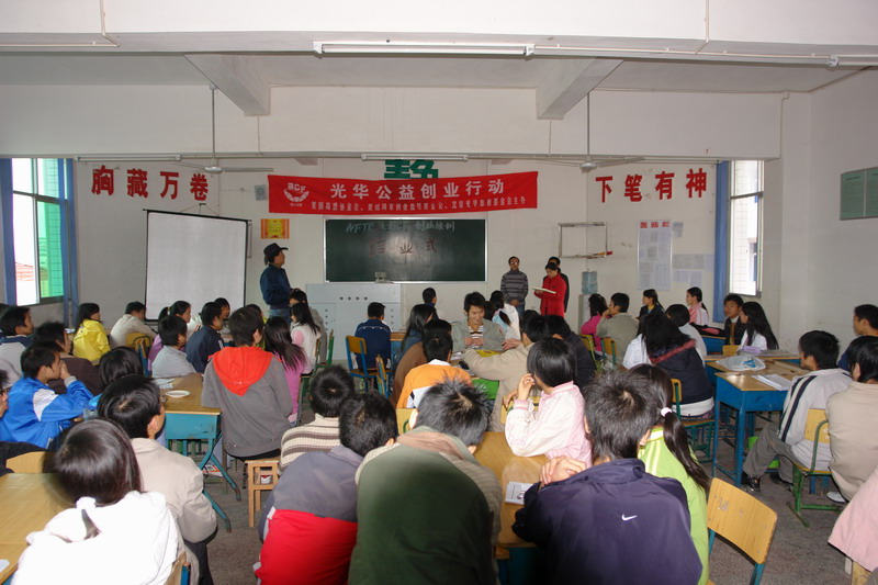 《北京光华慈善基金会》的两位老师不远万里从北京来到我们实验中学开展光《华公益创业行动》,指导我们如何创业.让我们学会创业,为自己寻求一个好的出路.