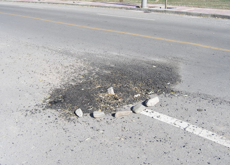 在学校的西面有一条很宽而且很长的高速公路,它很平坦,路上的车辆与行人不知在上面行走了多少 回,显出了一副陈旧的样子;还有,在这边有的地方都凹了下去,而且用石头围了起来。