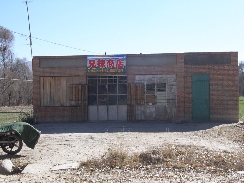 在小卖部旁,有好几户人家 ,而且每家门前都有几棵树,显出一副生机勃勃的样子;那些树长的很高很高,但它们有的快要变成秃头了,让人感到很凄凉。