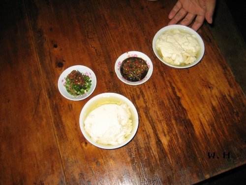 好啦!豆花蘸水就做好了,那纯白的豆花,配上调料,真是好吃极了!
