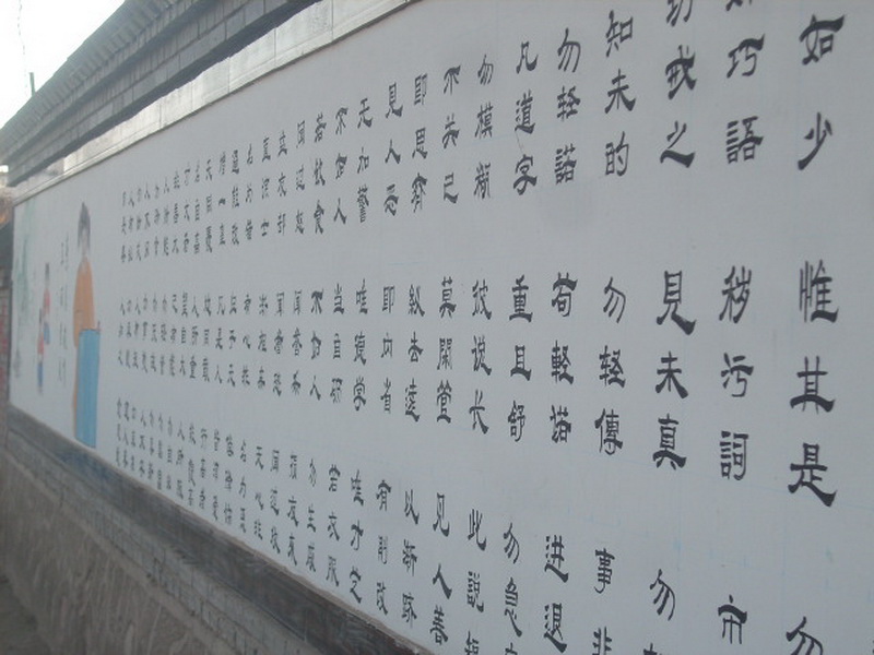 除了文言文以外,我们学校的墙上还画了一些同学,这些同学们的服装好像和我们不一样,但是所干的事情是一样的,那就是学习。你看她们学习的多认真呀,好像是她们在给我们做榜样,让我们也好好学习呢!