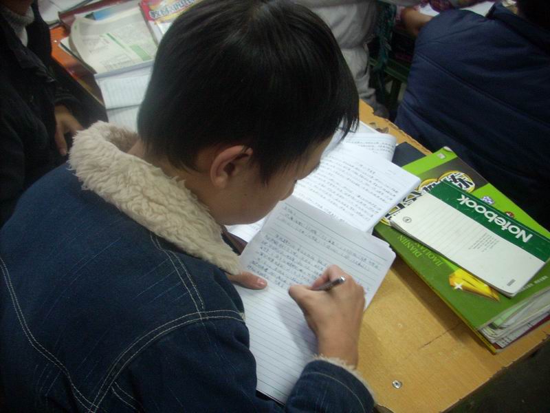 在一次测试中,同学们都在检查自己的文具,我也检查了一下,突然发现我的直尺不见了。这可怎么办哪?没有直尺怎么考试啊?正在我急得焦头烂额的时候,他走了过来,说:"你怎么了,"我说:我的直尺不见了。"他什么也没说,跑到自己的座位后,我只听到 "啪"的一声,他拿着半节尺子走过来,给了我,说:"拿去用吧。"我拿着那半节直尺,有一种说不出的感激,这时,测试开始了。我们都回到座位,准备考试。