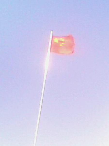 鲜艳的五星红旗在冬日里发出妖娆的红光,显得格外耀眼,依然静静的绽放那份属于自己的美丽,依然高高飘扬在上空,依然伴着朝阳升起。