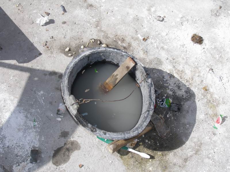 敲出银饰以后,因为银饰敲的时间较长有一定热度,所以就要用水把银饰冷却,再用刷子清洗干净。因为整天要用,所以水很脏。
