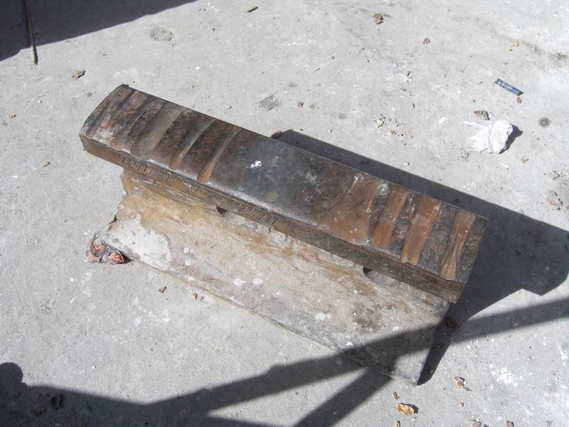 这是打锻银饰用的锭子,银匠把银饰放在锭子上敲打出来。这个锭子表面很光滑,这说明已经用的时间长了。这也是特别重的,抬 起来肯定很费事。