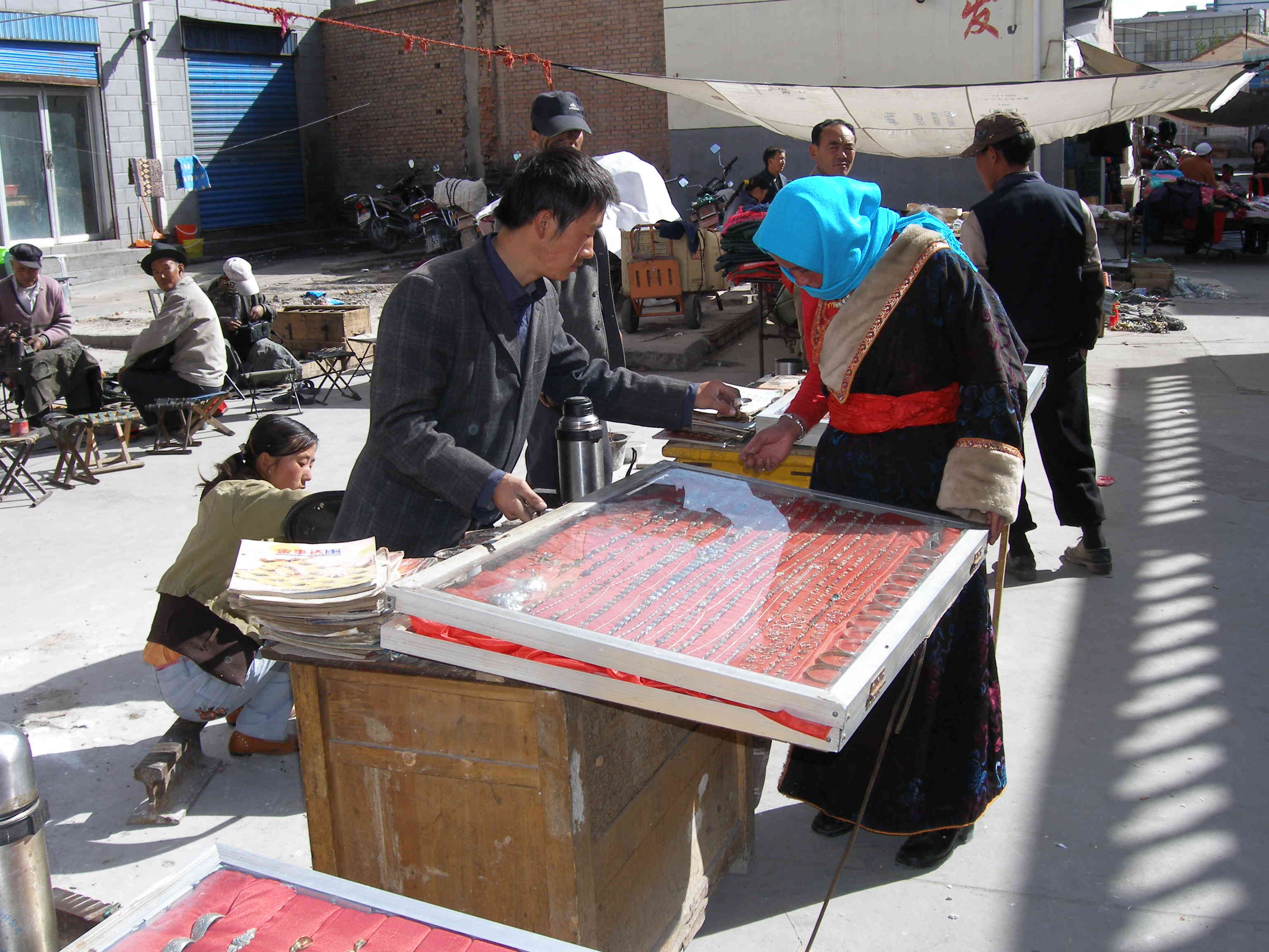 当银匠把银饰制作出来摆上时,就有很多人选购。买主热情的,耐心的介绍着,卖主也精心选出自己喜欢的首饰。
