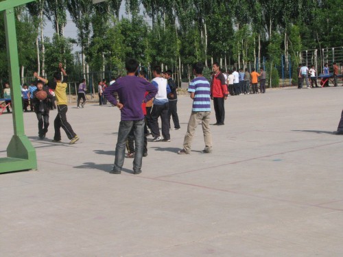 首先我们看看同学们在操场上的情景吧。有的同学在打篮球,有的同学在踢足球,打沙包……都是我们喜欢的活动。满操场都是同学们的欢笑声,嬉闹声。